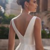 The romantic gown showcases an elegant V-back along with a sophisticated V-neckline and a natural waistline.