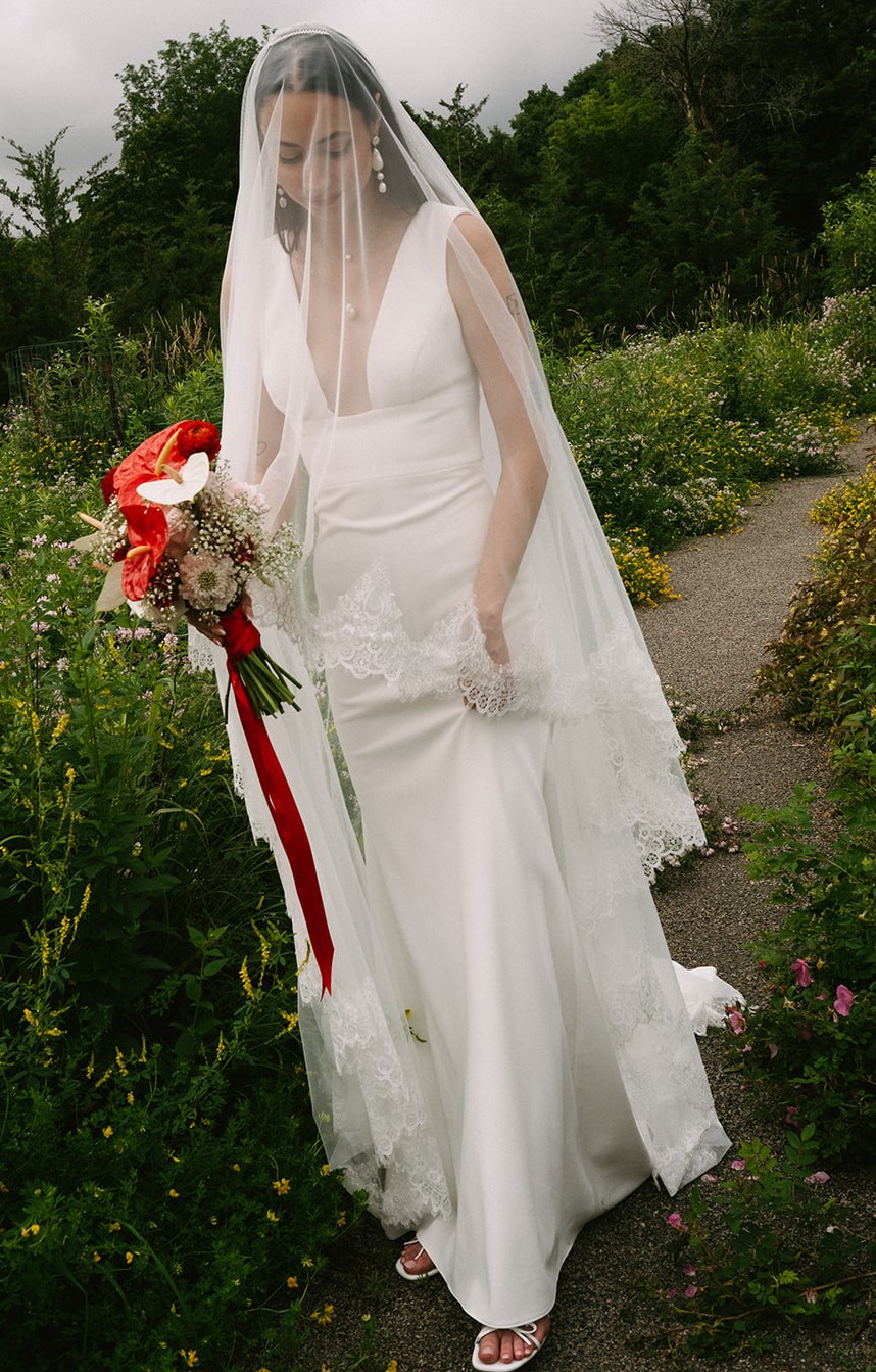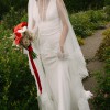 This beautiful dress is in wonderful condition. Tailored to fit me perfectly (see alteration info and measurements for details). Worn on my wedding day and dry-cleaned afterwards, now kept in a closet in a smoke-free home. Comes complete with original dust bag. Inner tag with label, size and fabric info slightly disheveled but completely legible. Please reach out with any questions. (Open to including my veil if you're interested!)