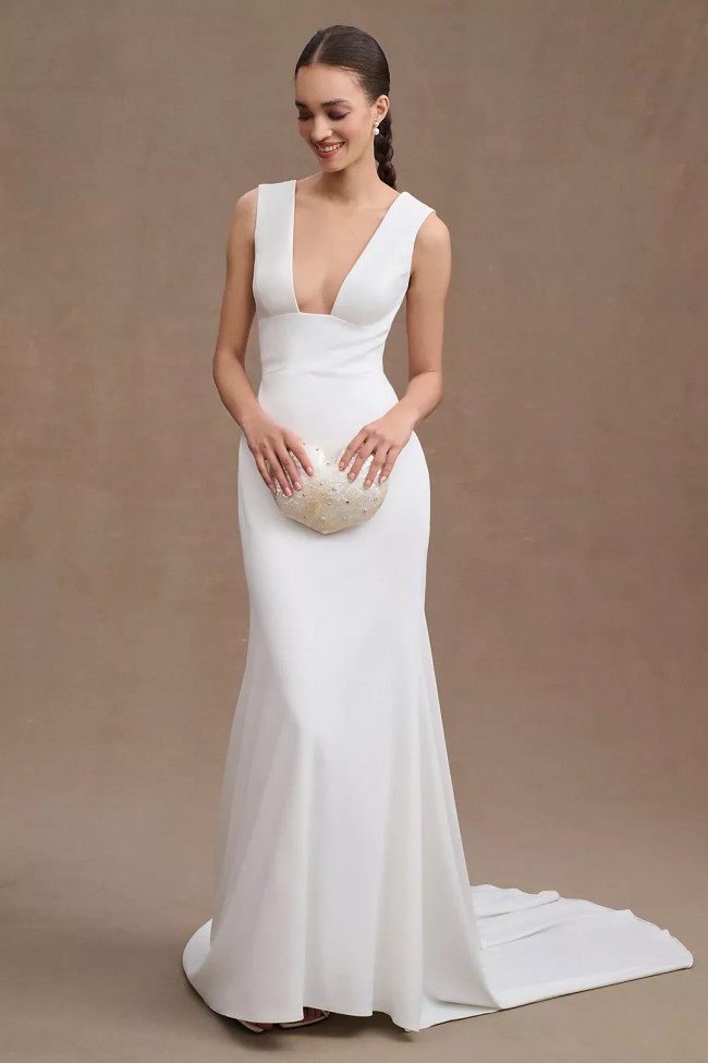 Wtoo, by Watters Chloe Plunge Crepe Column Wedding Gown