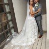 The Fleur Veil reveals delicate drama. Adorned with artfully placed hand-cut rose motifs, the length of this veil is 270cm Cathedral Veil. It is reminiscent of Grace Loves Lace's signature rose embroidery featured on their lace silhouettes. This veil is a two-tier veil, top tier is 70 cm and bottom tier is 270 cm, cathedral length.