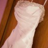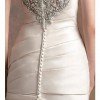 The fabric is called Encore, which is a Mikado-type fabric that holds its shape like taffeta but is much softer and lighter, and definitely more luxurious (like satin). From the sparkly jewel encrusted neckline and back to the perfectly ruched bodice and pick-up skirt, this gown is pure perfection!