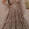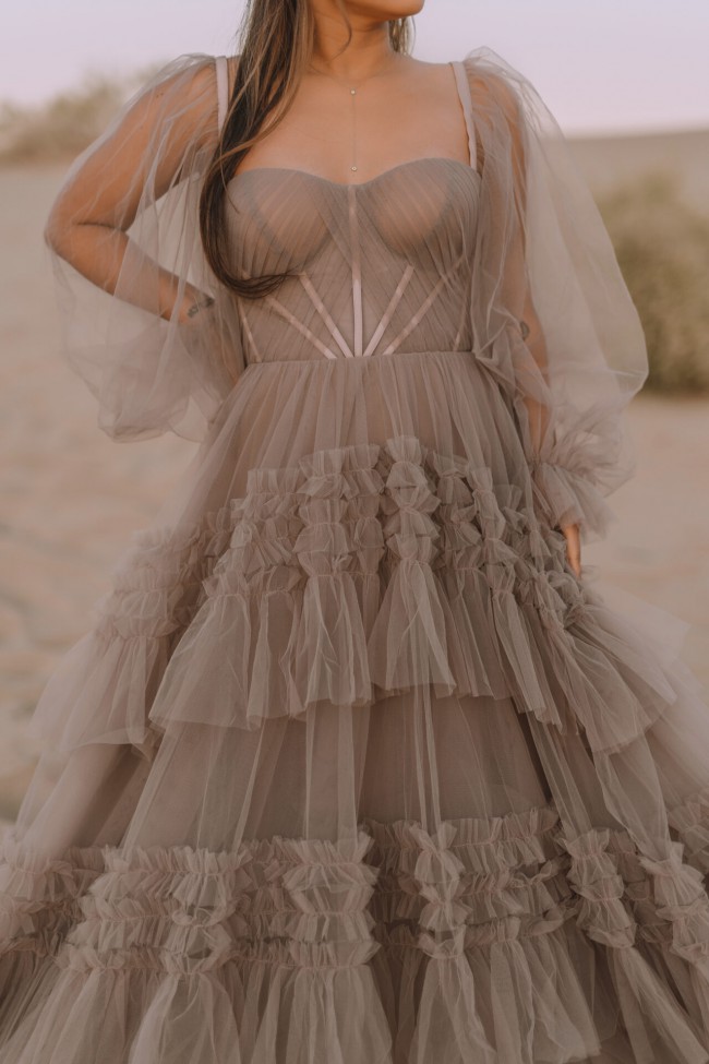 Dreamy Tulle A-Line Bridal Dress with Blouson Sleeves