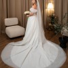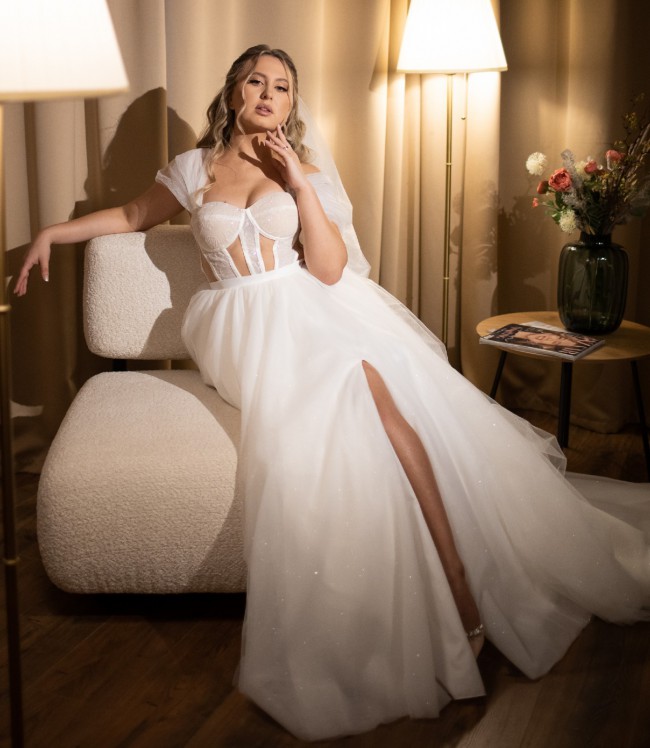 This stunning Roxanne wedding dress by Julia Helena captured my heart from the moment I tried it on. The beautiful ivory fabric drapes elegantly into a classic ballgown silhouette, making me feel like a true princess on my special day. Its off-the-shoulder neckline adds a romantic touch that showcases just the right amount of skin while maintaining a timeless elegance.