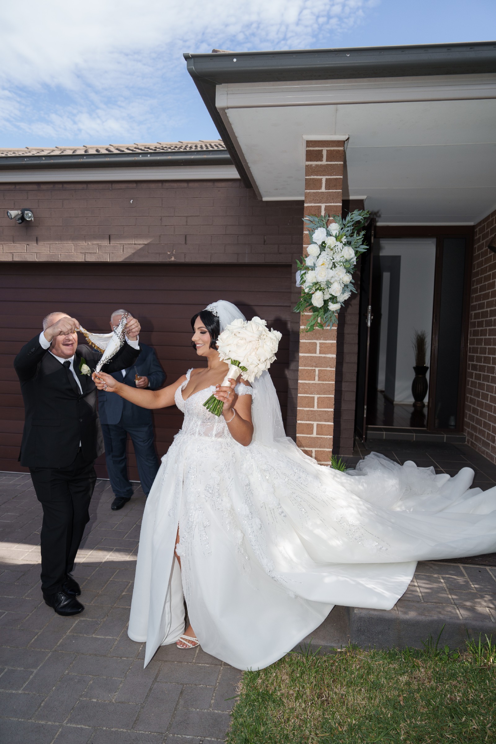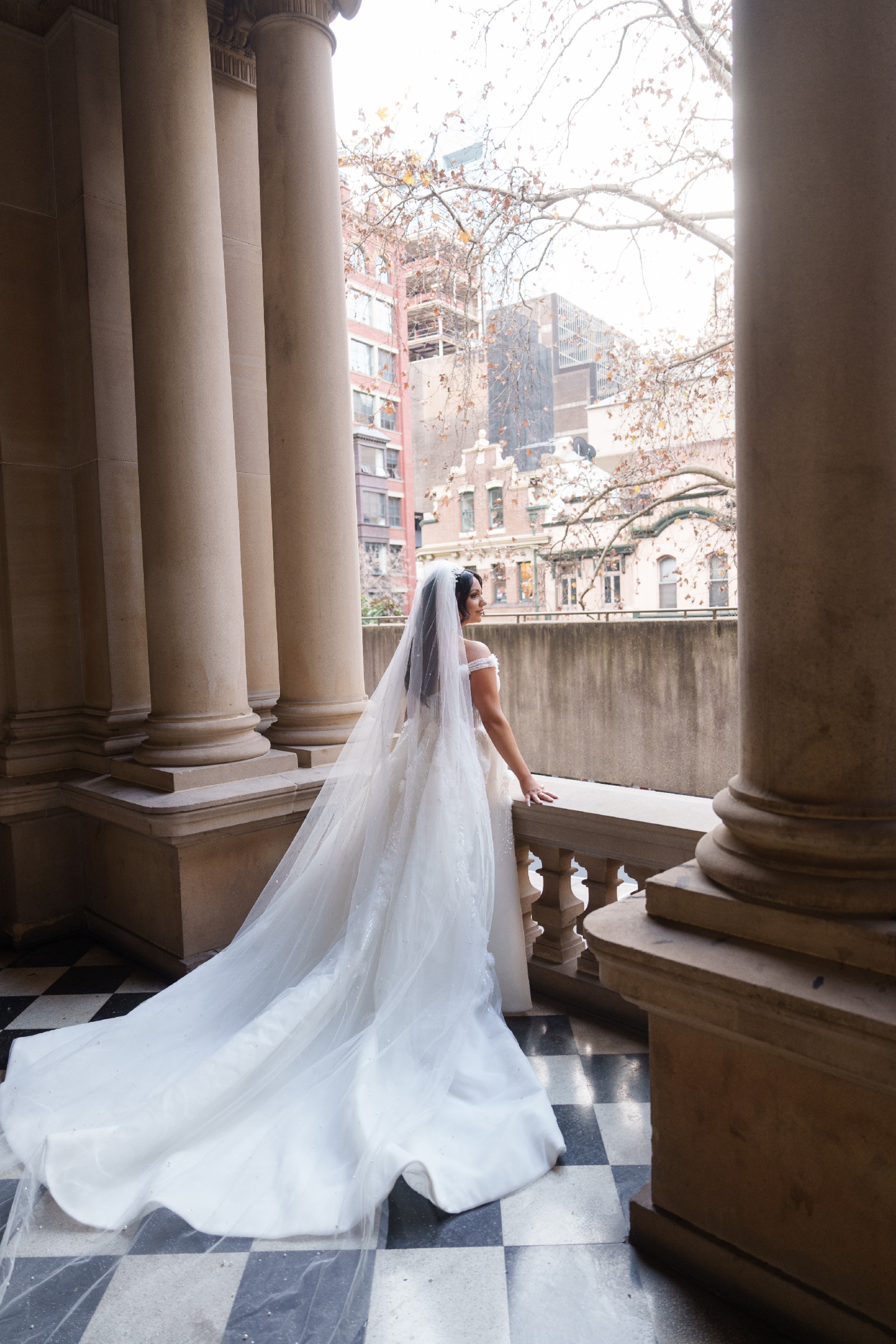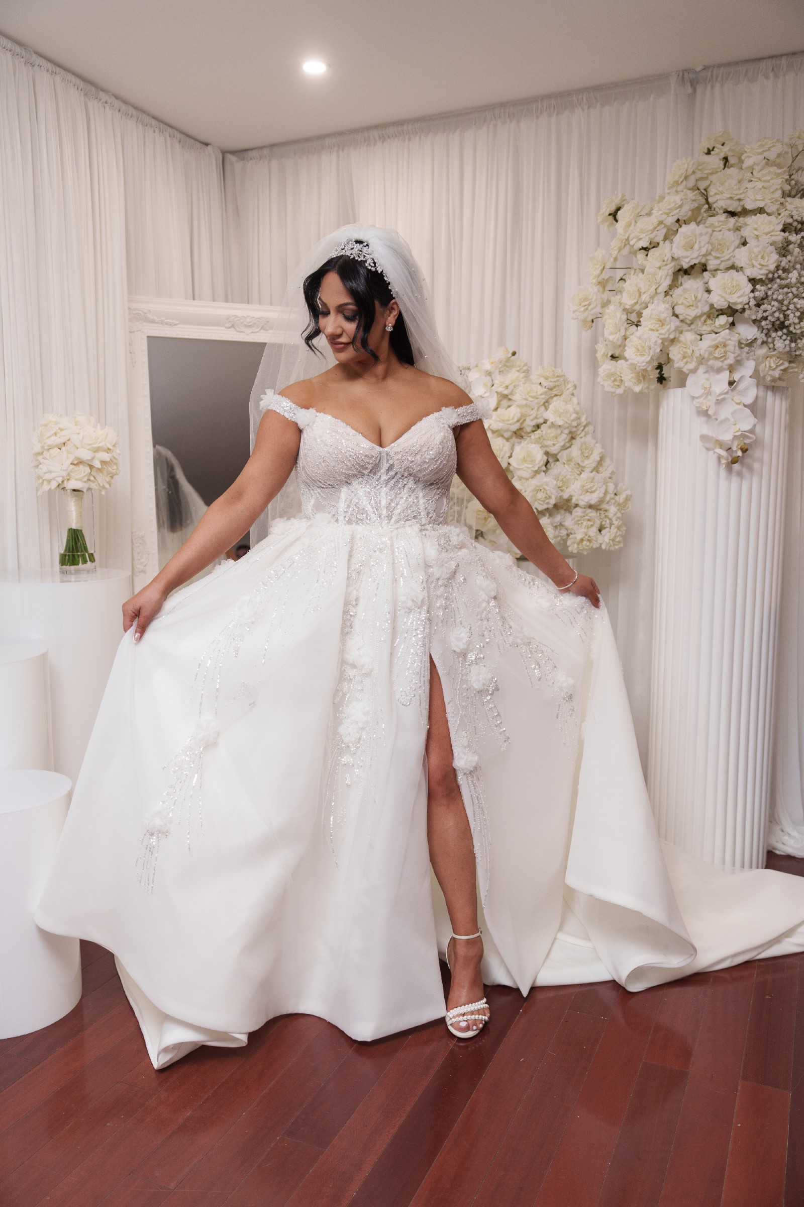 I am selling my beautiful Elysian Wedding gown along with my veil which has glitter and pearls throughout.