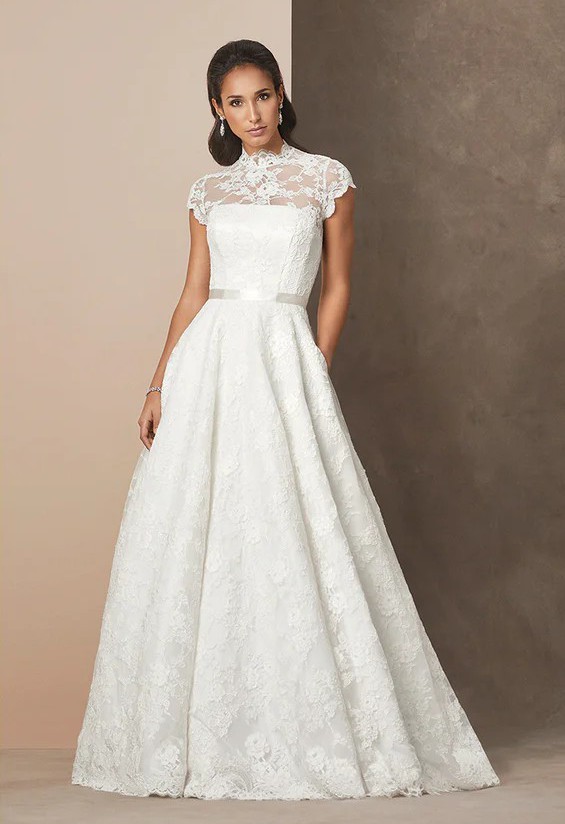 - The neckline was scalloped with the soft lace and raised only slightly to bring a softness to the edges of the dress without getting in the way of hair / make up
