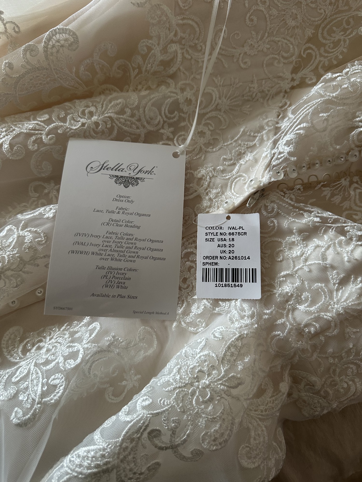 Stella York, size 20 but I’m a highstreet 16 and it is a tad big on me but would fit 16-18.