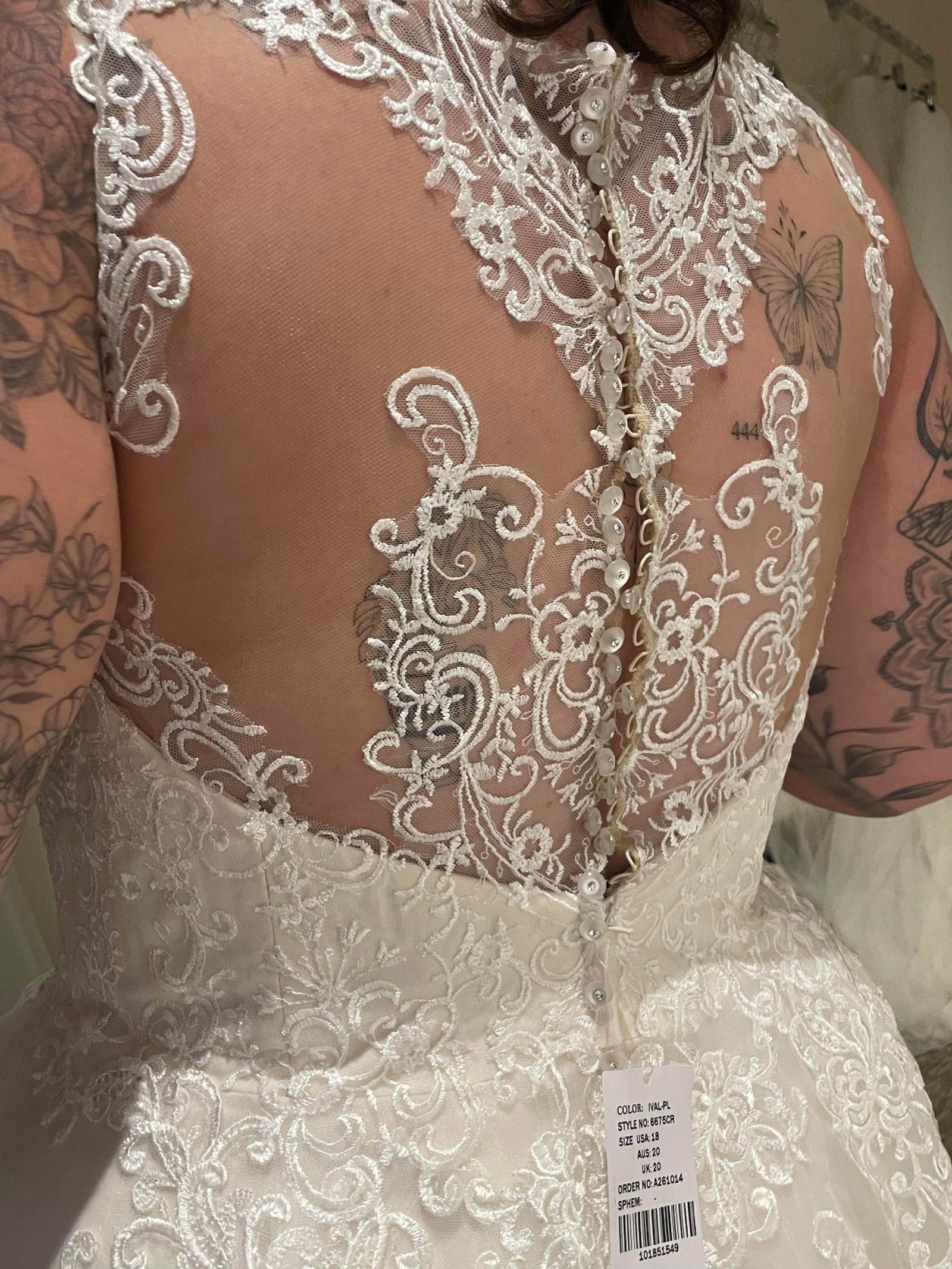 It’s a stunning dress just not my style anymore, the back is particularly gorgeous and my favourite part of this dress, long train and lace details.