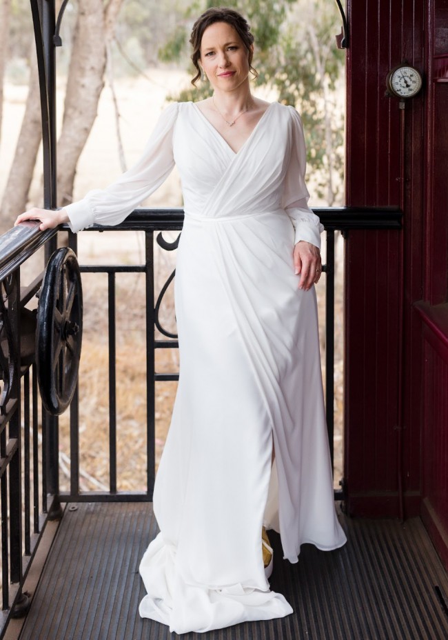 - This created a lovely draping of the gown rather than the underlining being exposed by the conventional method of pinning up the train at the back