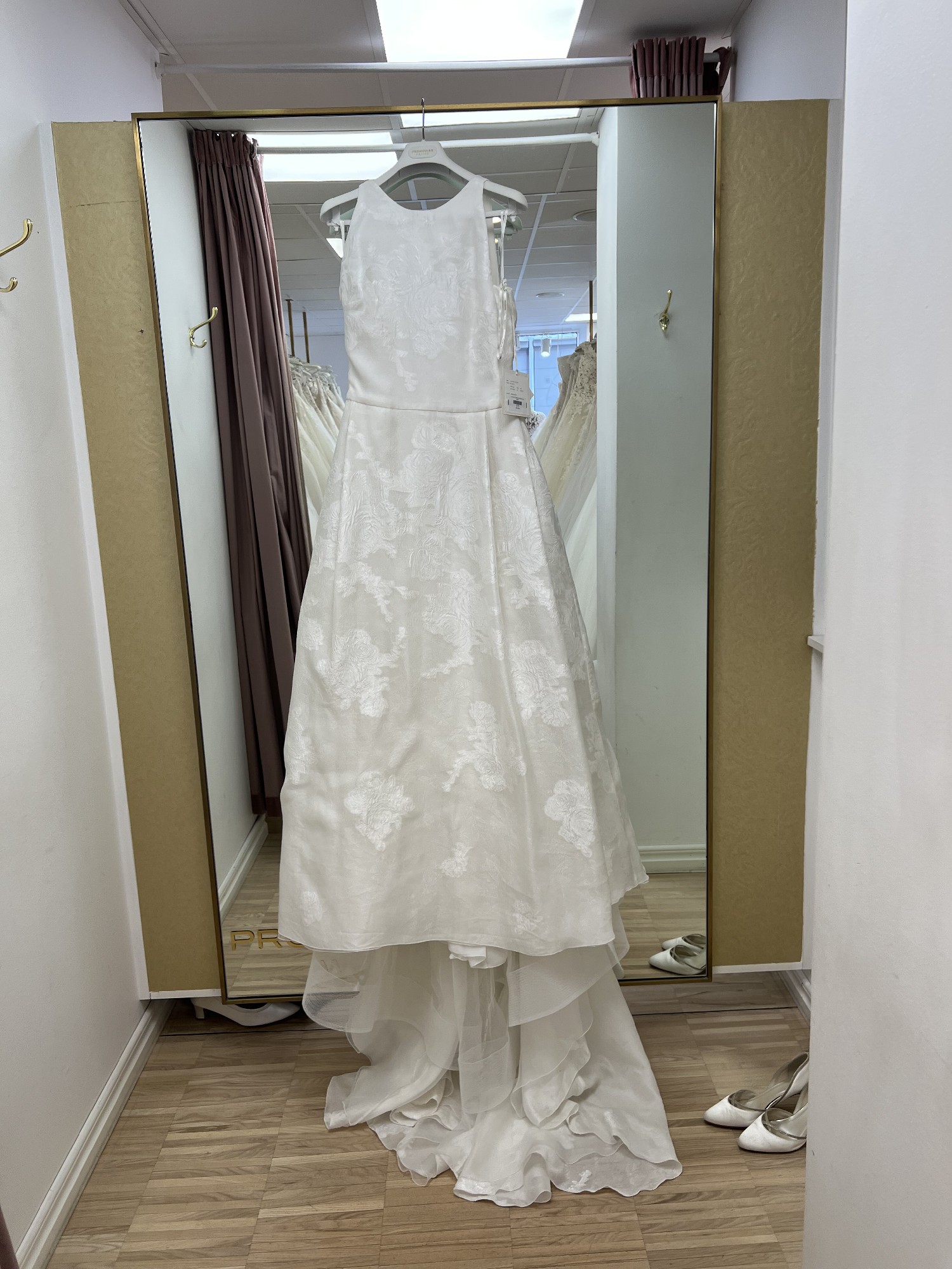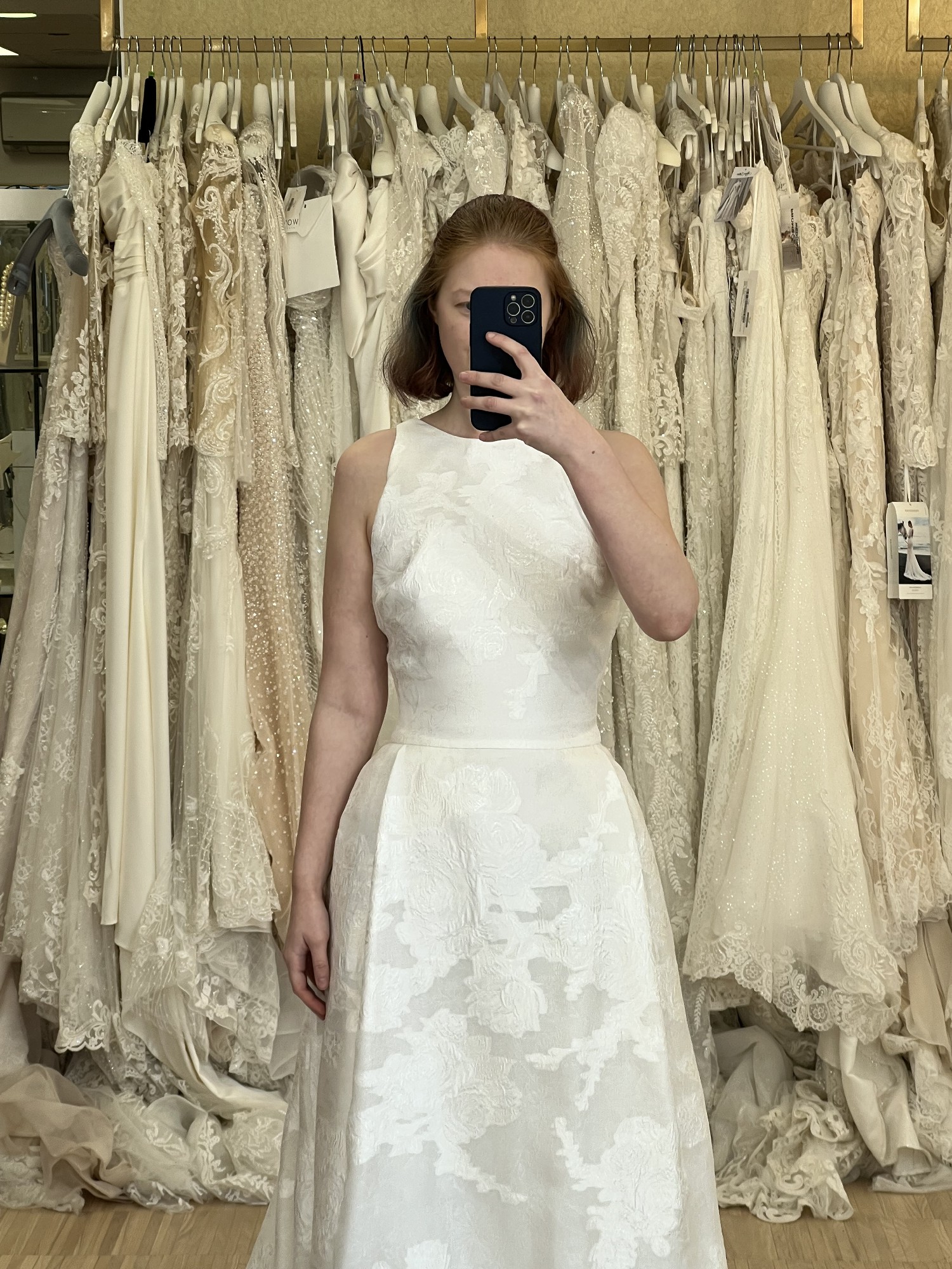 This breathtaking Pronovias dress, Cynthia, became the centerpiece of my most cherished memories. The moment I slipped into its elegance, I felt like a true bride, enveloped in its exquisite design and luxurious fabric. The high neck and capped sleeves create a refined, timeless look that radiates grace, while the A-line silhouette flatters every curve and adds effortlessly to the romantic charm of the day.