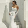 The Haven dress is elegant, chic and romantic. This sleek strapless crepe gown is crafted to perfection! It features a structured sweetheart neckline adorned with draped bodice details, embellished in textured organza for a touch of ethereal charm. Delicate ruching along the waistline adds graceful definition, enhancing the silhouette with understated allure and feminine sophistication.
