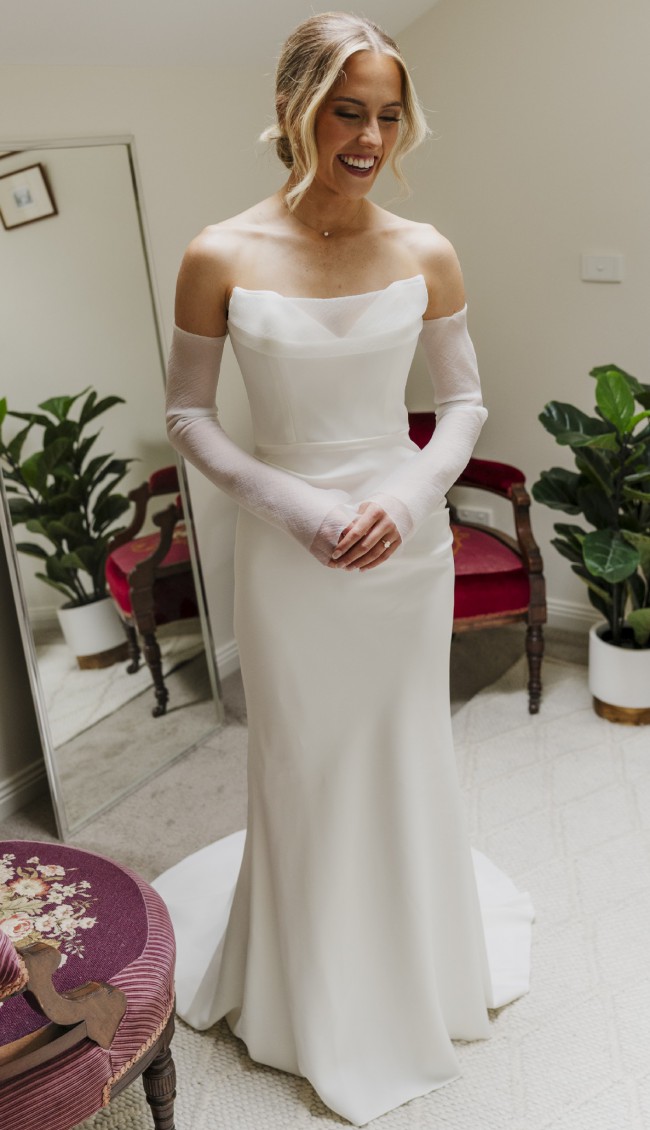 It is with deep regret that I am selling my gorgeous, dream wedding dress; the Haven gown from NEWHITE bridal, along with the S Sleeves (size 6-8)! I absolutely ADORE this dress... it is perfectly comfortable for dancing & hugging & moving in, flattering in all the right places, and timeless but unique.