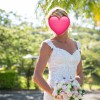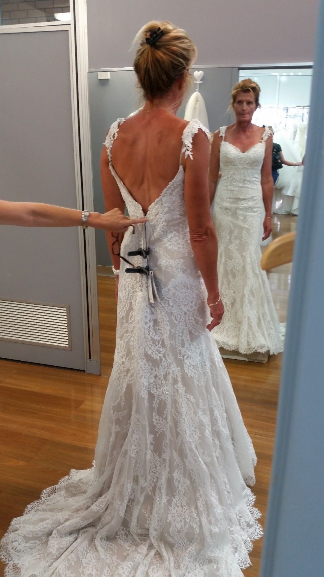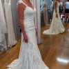 Beautiful Italian lace over a neutral stern. Shoestring straps with lace attached . Beautiful long flowing train