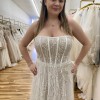 This Embellished wedding dress by Carfelli offers a captivating blend of elegance and romance, making it the perfect choice for your special day. Crafted in a beautiful ivory lace, this floor-length A-line gown sets a stunning backdrop with its exquisite embroidery that catches the light effortlessly. The straight neckline accentuates the collarbone, while the strapless design ensures a timeless, sophisticated look.