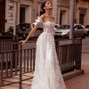 The show-stopping corset back not only provides the perfect fit but also adds an element of allure that will leave your guests enchanted. Adding to its charm, delicate puff sleeves offer a touch of grace, creating a whimsical silhouette that is both modern and classic. Ideal for a spring or summer wedding, this dress allows you to glide down the aisle with confidence and style.