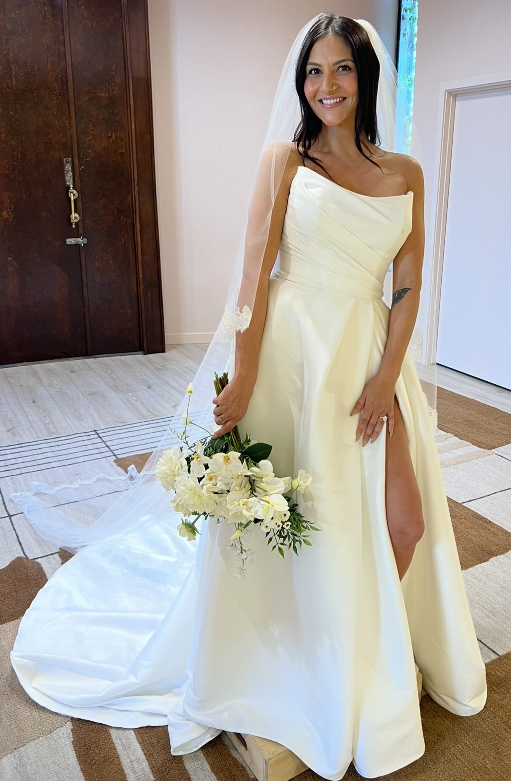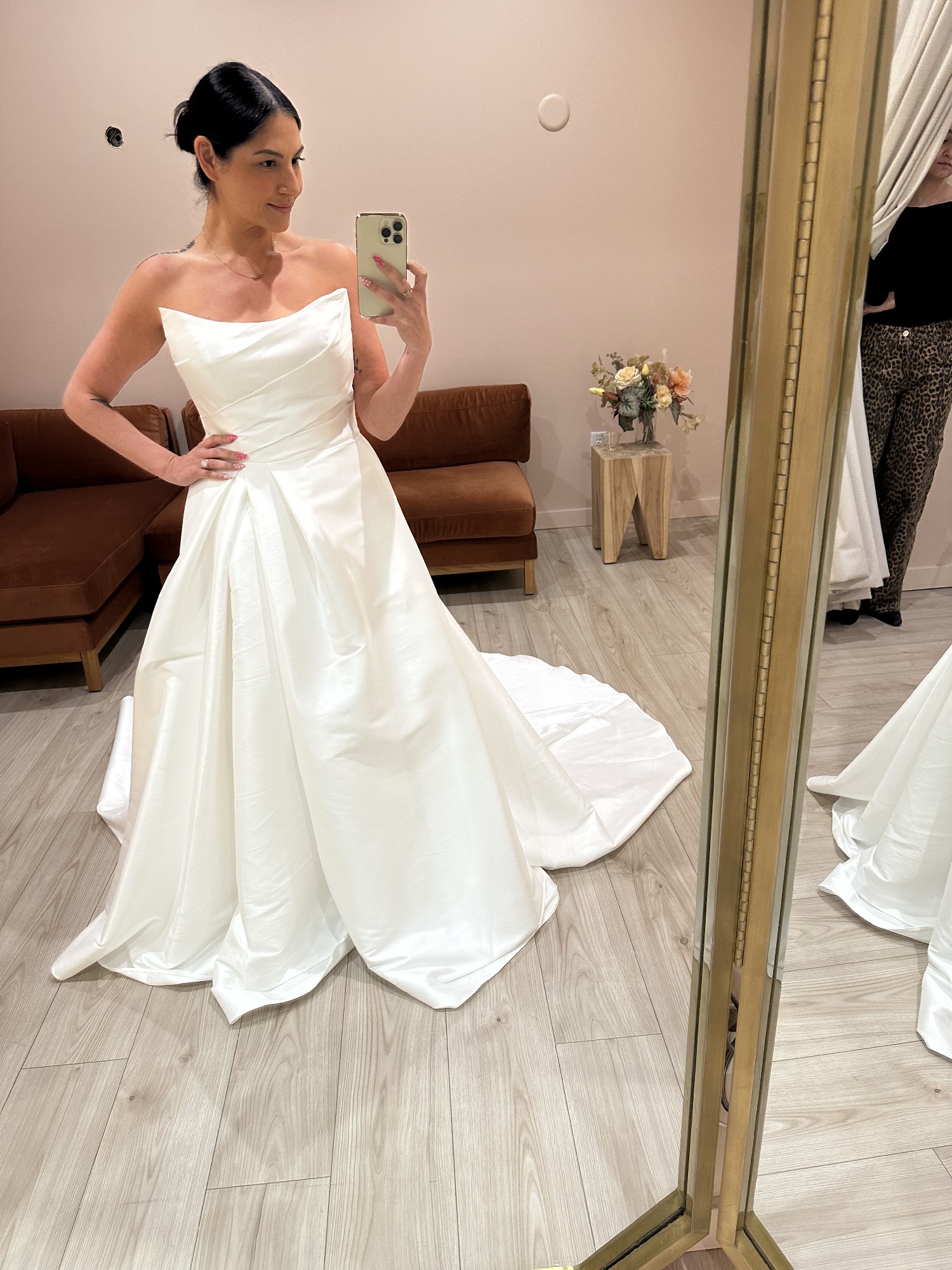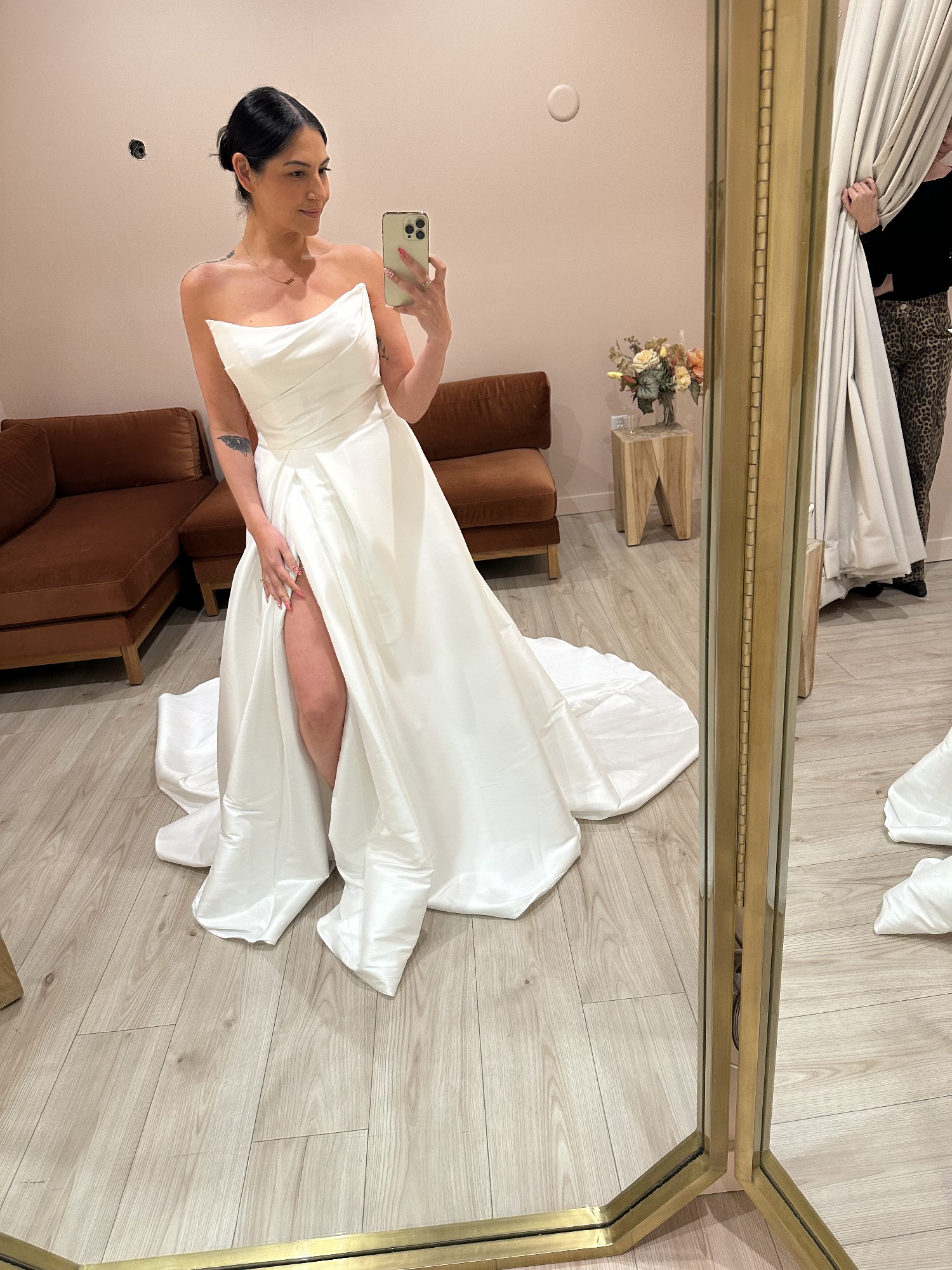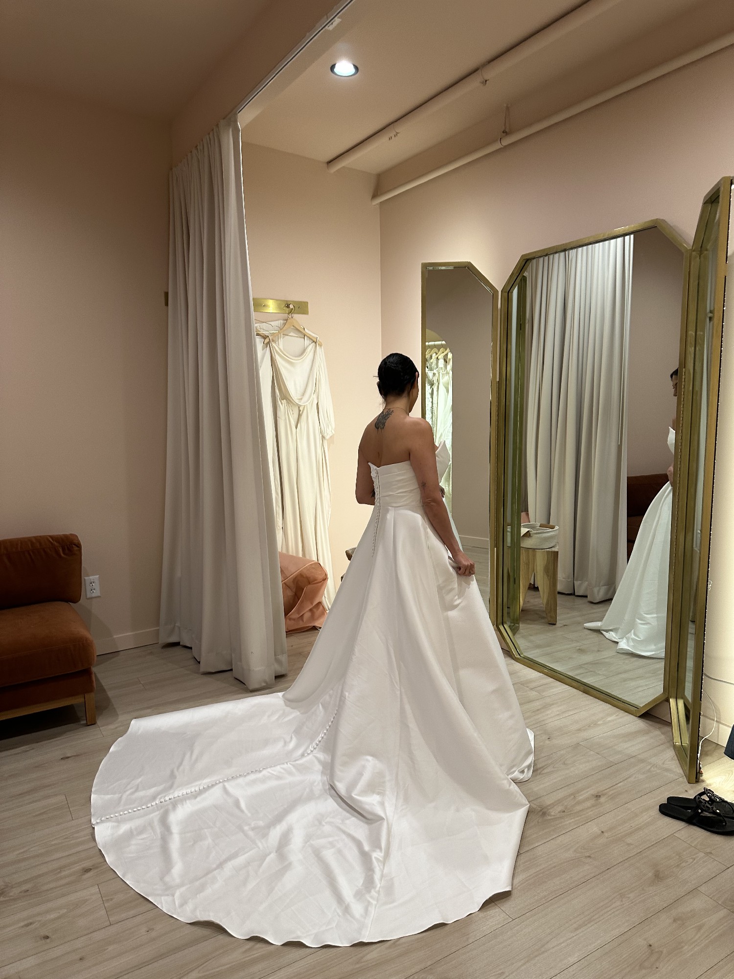 Brand new never worn. Paid additional to have buttons go all the way down the train.