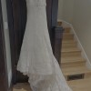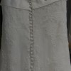 The Pronovias Segrera wedding dress, designed by the late Manuel Mota for the 2009 collection, exemplifies timeless elegance with a modern twist. This gown features an A-line silhouette that gracefully flares from a dropped waist, offering a flattering fit for various body types. The square neckline and capped sleeves add a touch of classic sophistication, while the corset-style lace-up back provides both structure and a customizable fit. Crafted in a shade of ivory, the Segrera dress combines traditional charm with contemporary design elements, making it a cherished choice for brides seeking a blend of vintage and modern aesthetics.