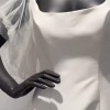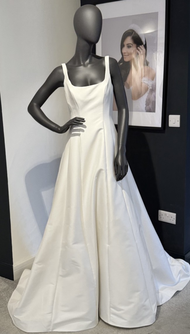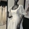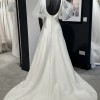 A luxurious A-line Mikado gown featuring a scoop neckline, contouring seam details and detachable puff sleeves crafted from a contrasting fine tulle.