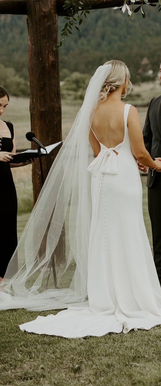 Looking for a simple yet elegant look for your wedding day? Look no further than the Allure 9965 gown, part of the classic, fashion-forward Allure Bridals Collection. Chicly adorned with only a tie back, this minimalist crepe sheath is a knockout. The streamlined design of this Allure Bridals wedding dress imbues your bridal look with class, confidence, and modern sophistication. See if the Allure 9965 simple and elegant gown is right for your dream wedding when you try it on at your local Allure Bridals retailer.