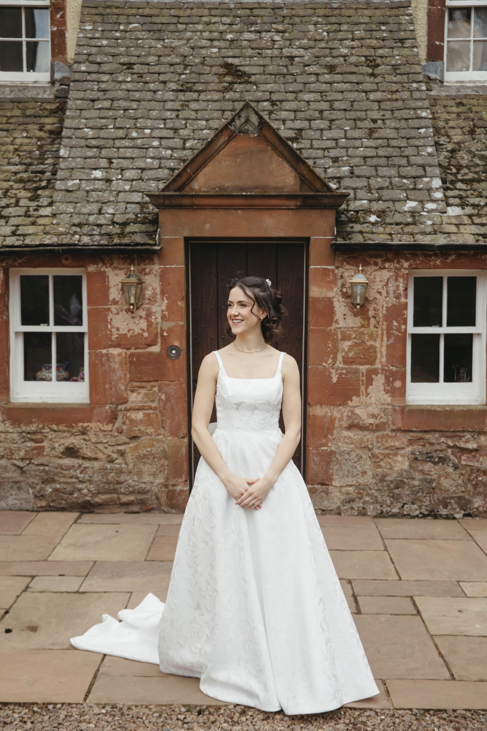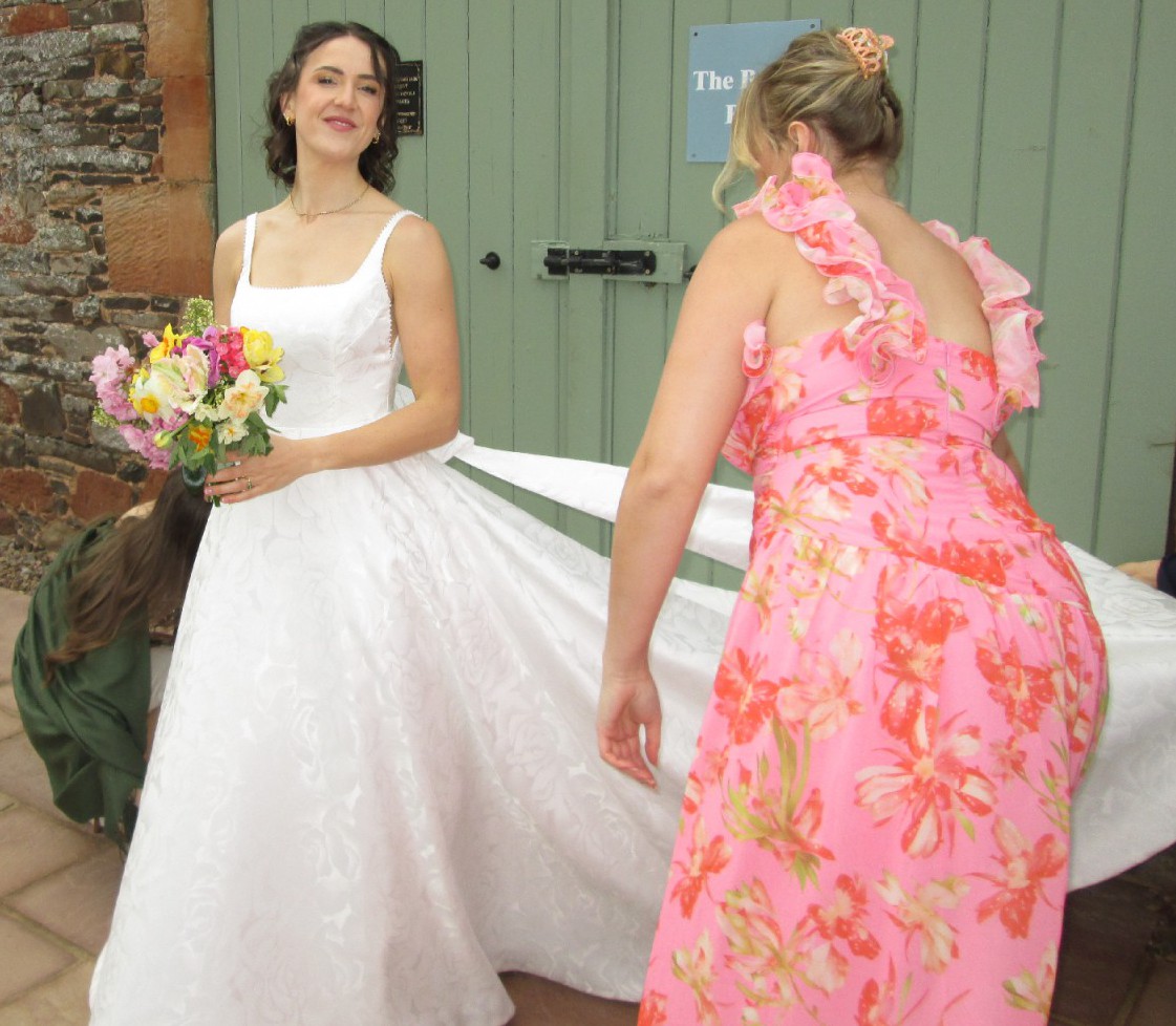 - Taken in at waist and straps taken up