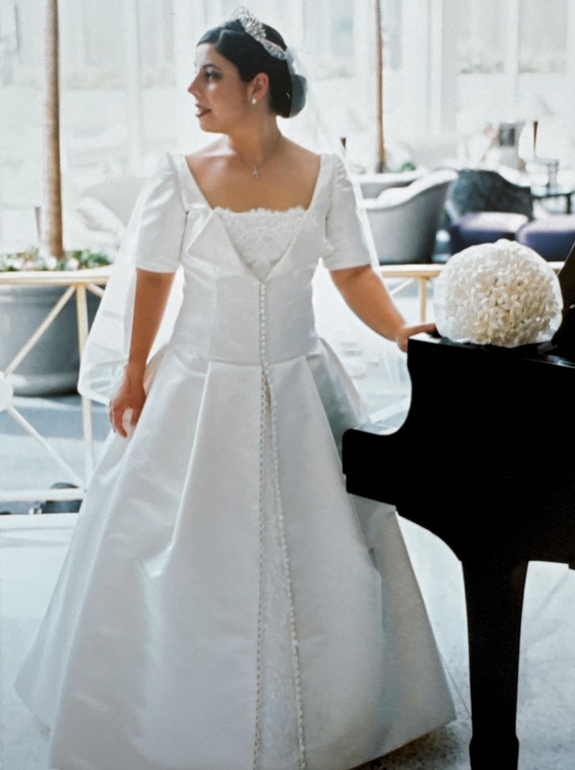 Step into timeless elegance with this exquisite custom couture wedding gown, created by renowned Miami designer Gabriella Arango. Worn once for her wedding at St. Patrick Church on Miami Beach in April 2001, this gown was lovingly tailored for a petite bride (5’0”, curvy build) who dreamed of feeling like a princess on her day.