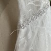 Measurements are based off the Chic Nostalgia size chart. It is a size 2 and fits like a European size 2 (which is standard bridal sizing). It has some visible imperfections. The visible imperfections include some loose and missing beadwork on the sleeve, and loose threads and beading on the belt by the zipper.