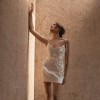Katherine Tash Lilou Mini Dress in silk satin soft white Size 2 .
