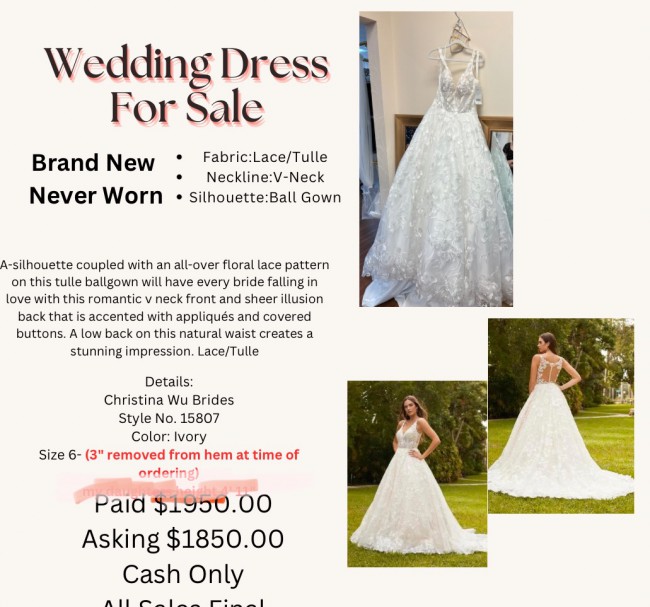 Imagine gliding down the aisle in this breathtaking creation, capturing the hearts of all your guests. Whether you’re saying "I do" in a grand venue or an intimate outdoor setting, this Christina Wu dress is designed to make you feel like the most beautiful version of yourself, ready to embark on your happily ever after.