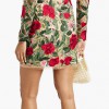No detail was spared to create this stunning cocktail dress featuring vibrant blooms hand-embroidered atop sheer mesh for an unforgettable look.