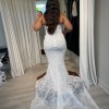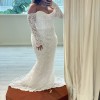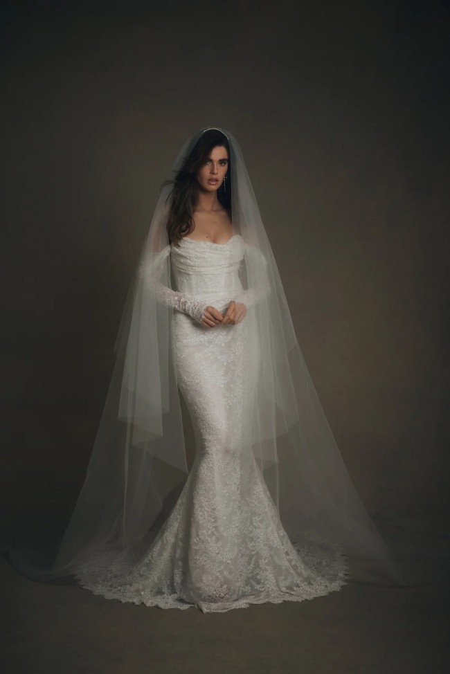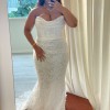 A really beautiful trumpet style dress from the Katherine Tash Paradise 2025 collection with beautiful beaded lace, long detachable sleeves, and a hand trimmed eyelash lace hem. This dress purchased in Los Angeles in November 2024 and was only worn in the bridal studio for about 20 minutes. It is unaltered and clean.