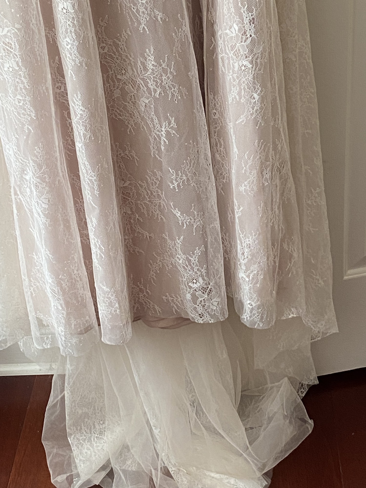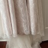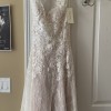 This enchanting Melissa Sweet wedding dress is a stunning embodiment of romance and elegance, perfect for the bride who dreams of a memorable day. With its exquisite ivory lace fabric, this A-Line silhouette gracefully flows to the floor, ensuring you’ll feel both spectacular and comfortable as you walk down the aisle. The sheer neckline adds a hint of allure, beautifully framing the collarbone, while the capped sleeves provide a delicate touch that enhances the overall design.