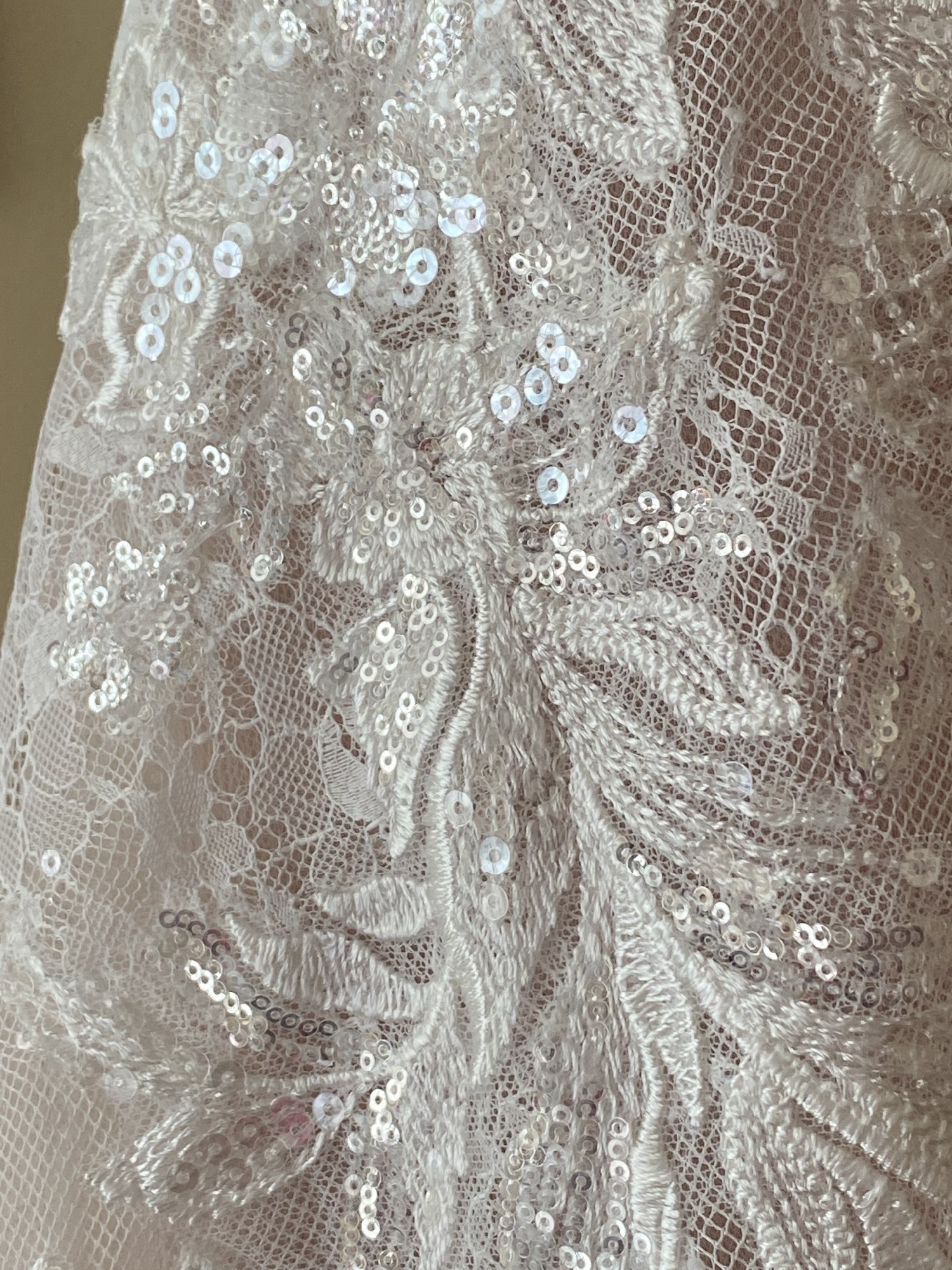 This size 6 gown is a true showstopper that marries classic elegance with contemporary flair, ensuring that each moment of your celebration is filled with beauty, joy, and unforgettable memories.