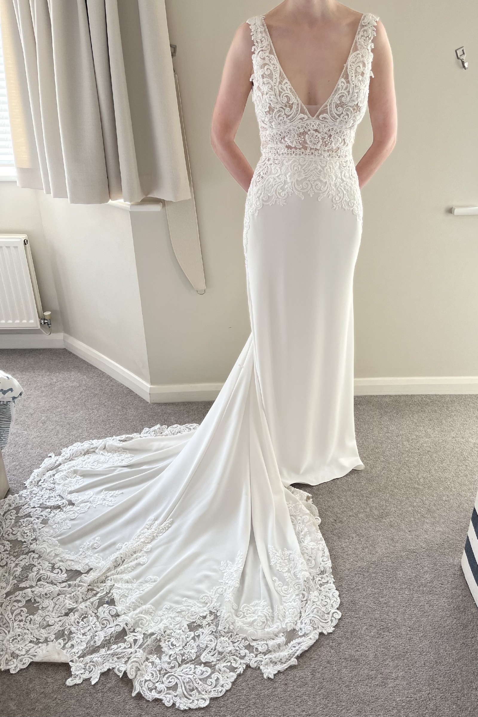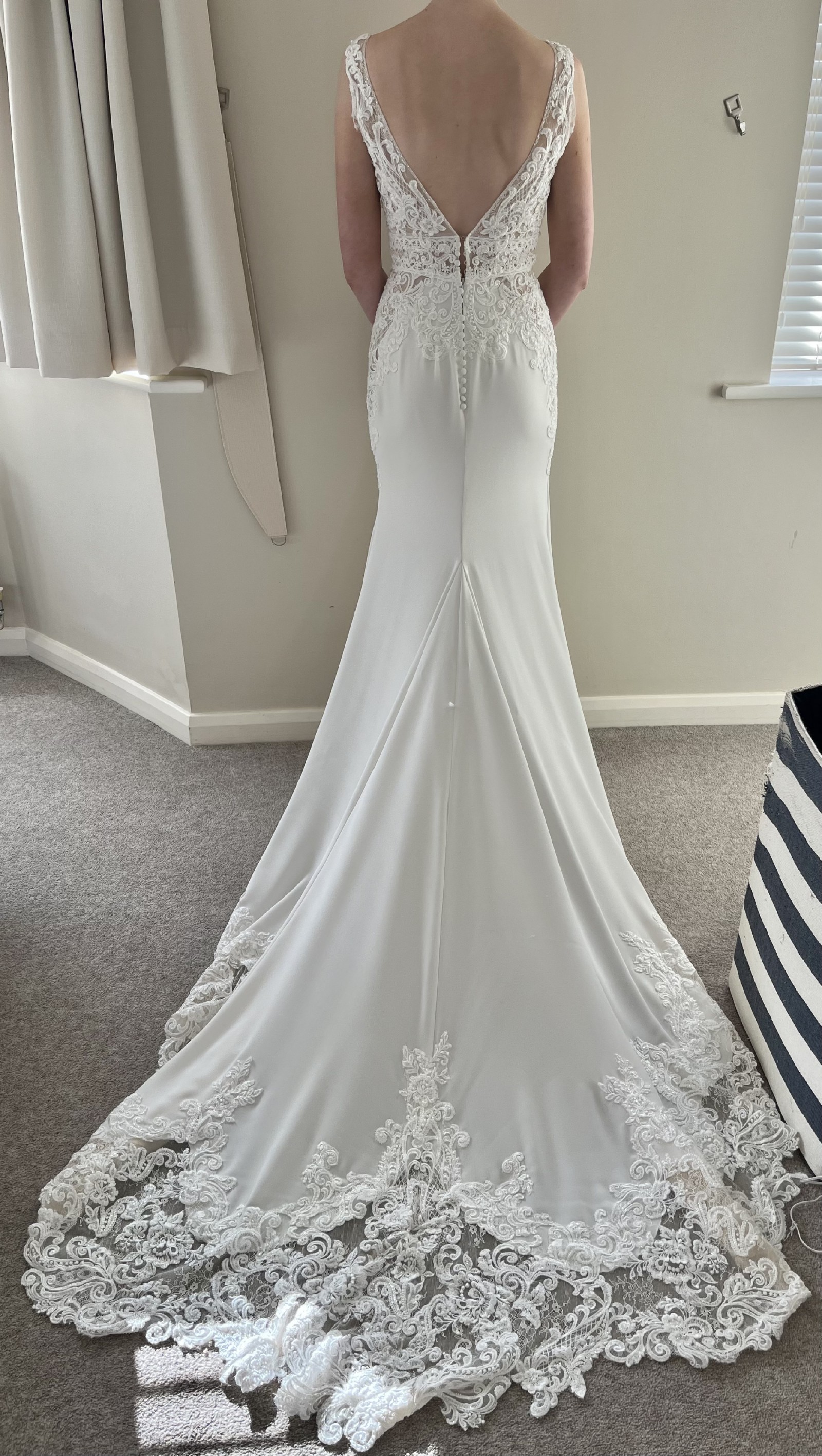Beautiful figure hugging Maggie Sottero wedding dress. Worn on the wedding day in 2021, then professionally dry cleaned and kept hung up in its bag.