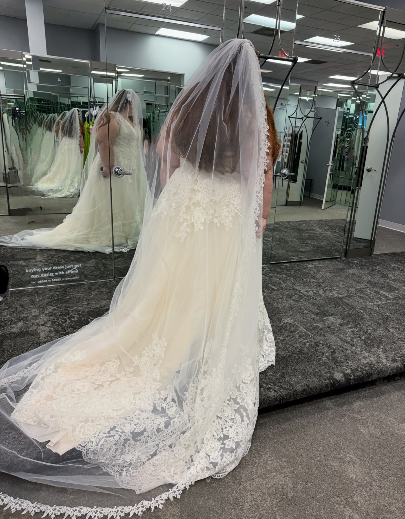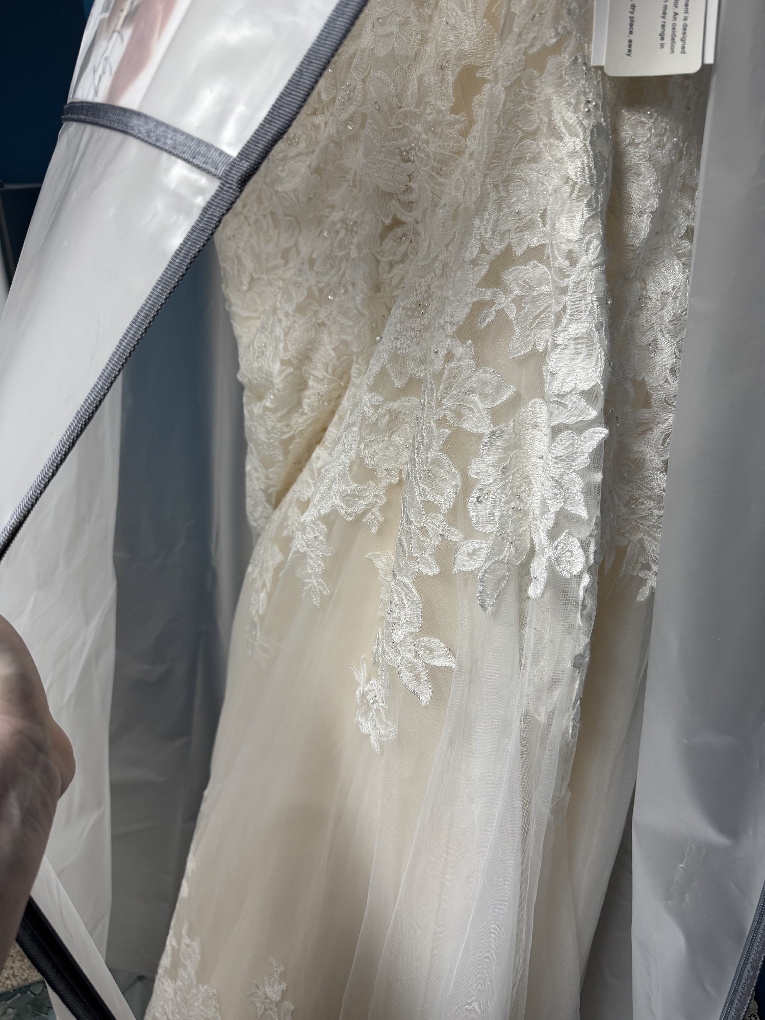 Unfortunately my wedding was cancelled, so I never got to wear it even once. It is still on the same hanger, in the purchased preservation bag hanging in my closet at my parents home.