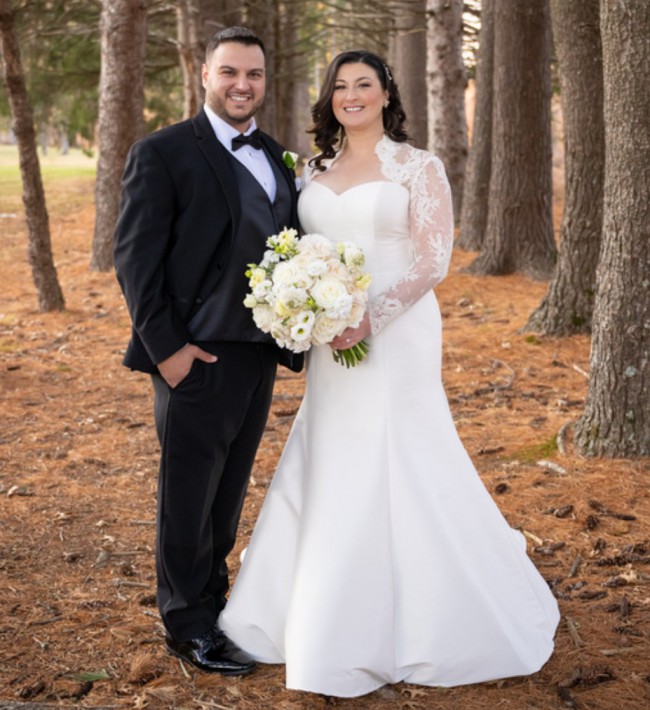 Gorgeous Sareh Nouri full length wedding customized wedding gown. This gown combines the top of the To Have & to Hold gown with long sleeve french lace sleeves with stretch mikado combined with the custom fit to flare skirt from the Callalily gown. The back has a zipper closure with beautiful button detailing. It is incredibly elegant and comfortable to wear!