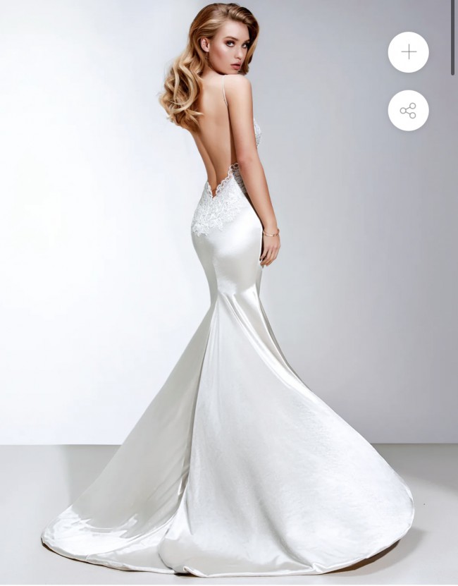 New, never worn Gemeli Power Lady Mai dress. Beautiful Ivory lace satin. Gorgeous open back. Size 4. I ended up losing too much weight (stress! Lol) and the dress didn’t fit so I had to get another one. Comes with Gemeli Power garment bag also.