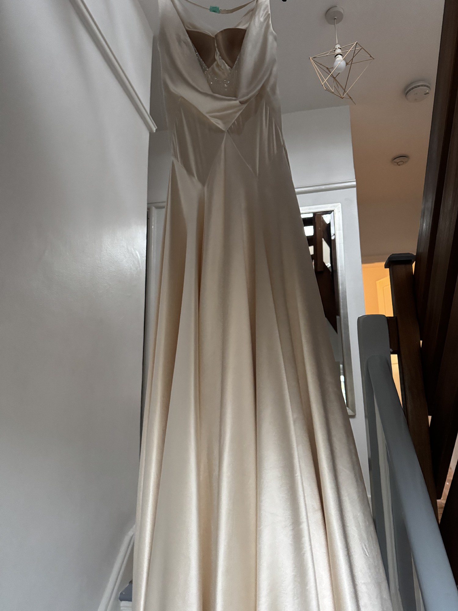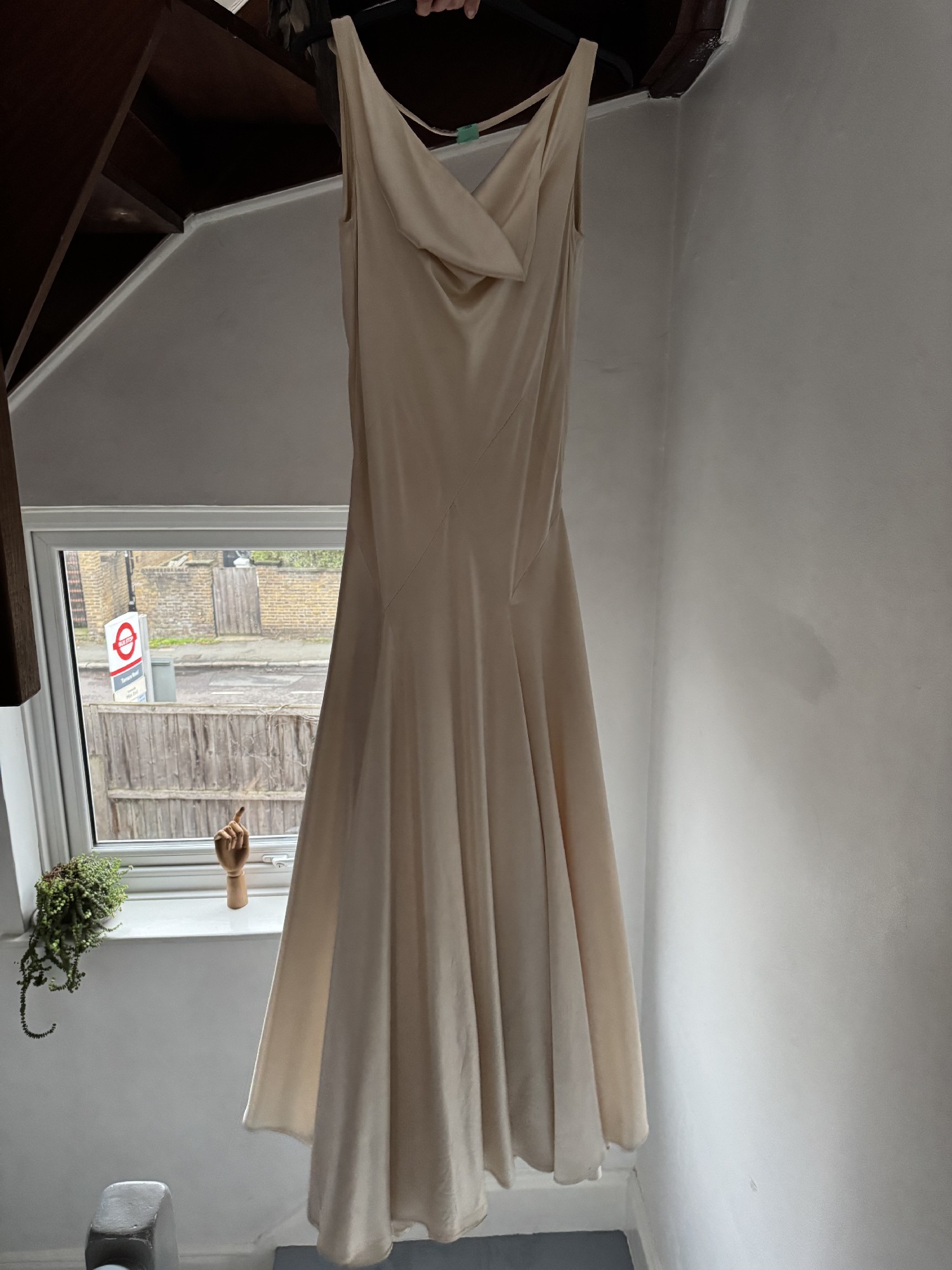 This stunning Jenny Packham Monaco gown was the perfect choice for my special day, and I’m excited to pass it on to another bride who will cherish it just as much. Crafted from luxurious cream silk, this trumpet silhouette beautifully hugs your curves while allowing you to move with grace and elegance. The scoop neckline adds a touch of sophistication, while the backless design creates a stunning focal point that is sure to turn heads.