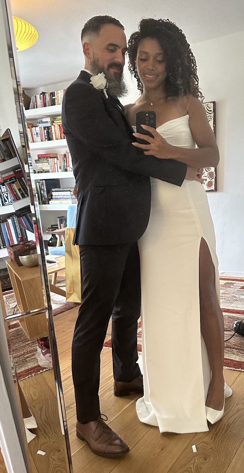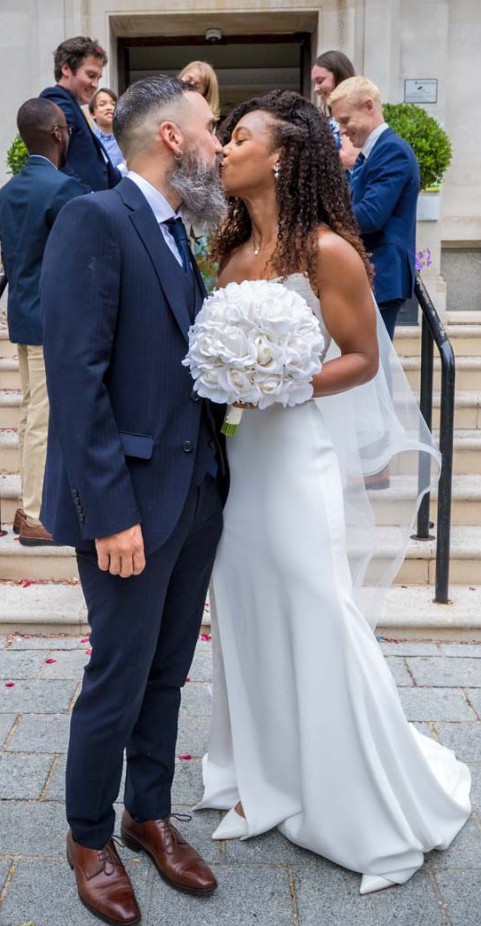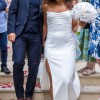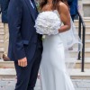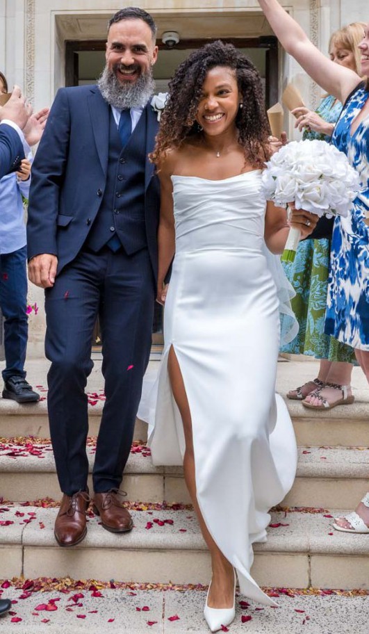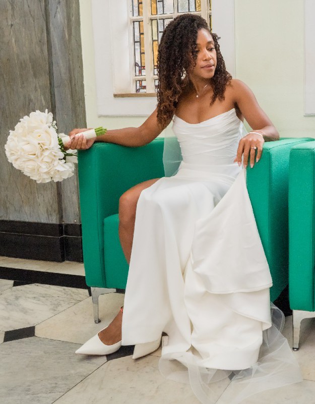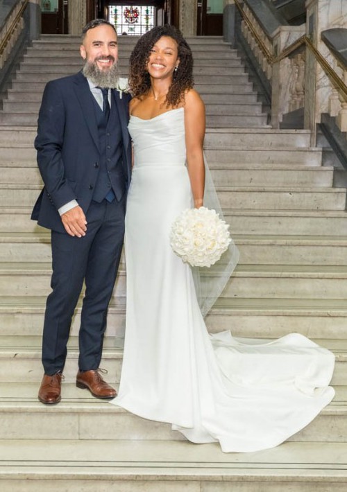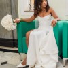 The moment I put this dress on I knew it was the one for me. Sleek classic effortless beauty. This dress is absolutely flattering it hugs in all the right places. It comes with detachable sleeves which I chose not to wear. I bought some tulle sleeves I also chose not to wear and am happy to add them as well as the veil if you would like.