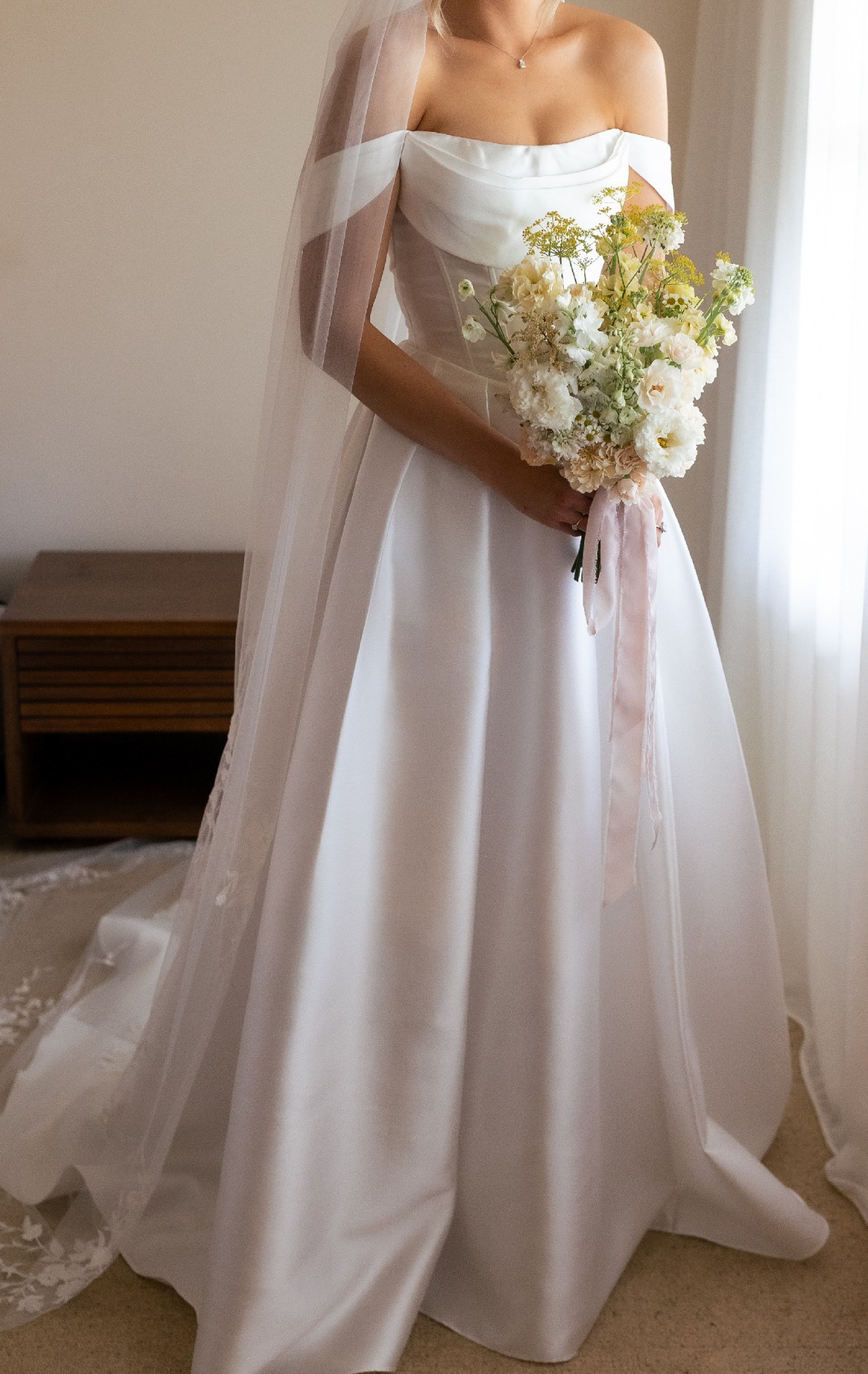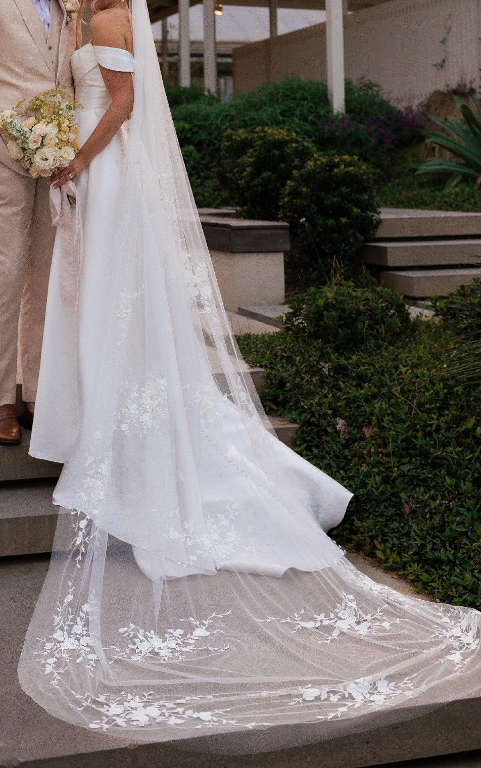 With its expertly crafted curve neckline, this dress effortlessly blends sophistication and charm. The floor-length gave a beautiful train when walking down the aisle. As I walked down the aisle, I felt like a true vision of bridal beauty, and I hope to pass on that feeling to another bride who will cherish this gown just as I did.