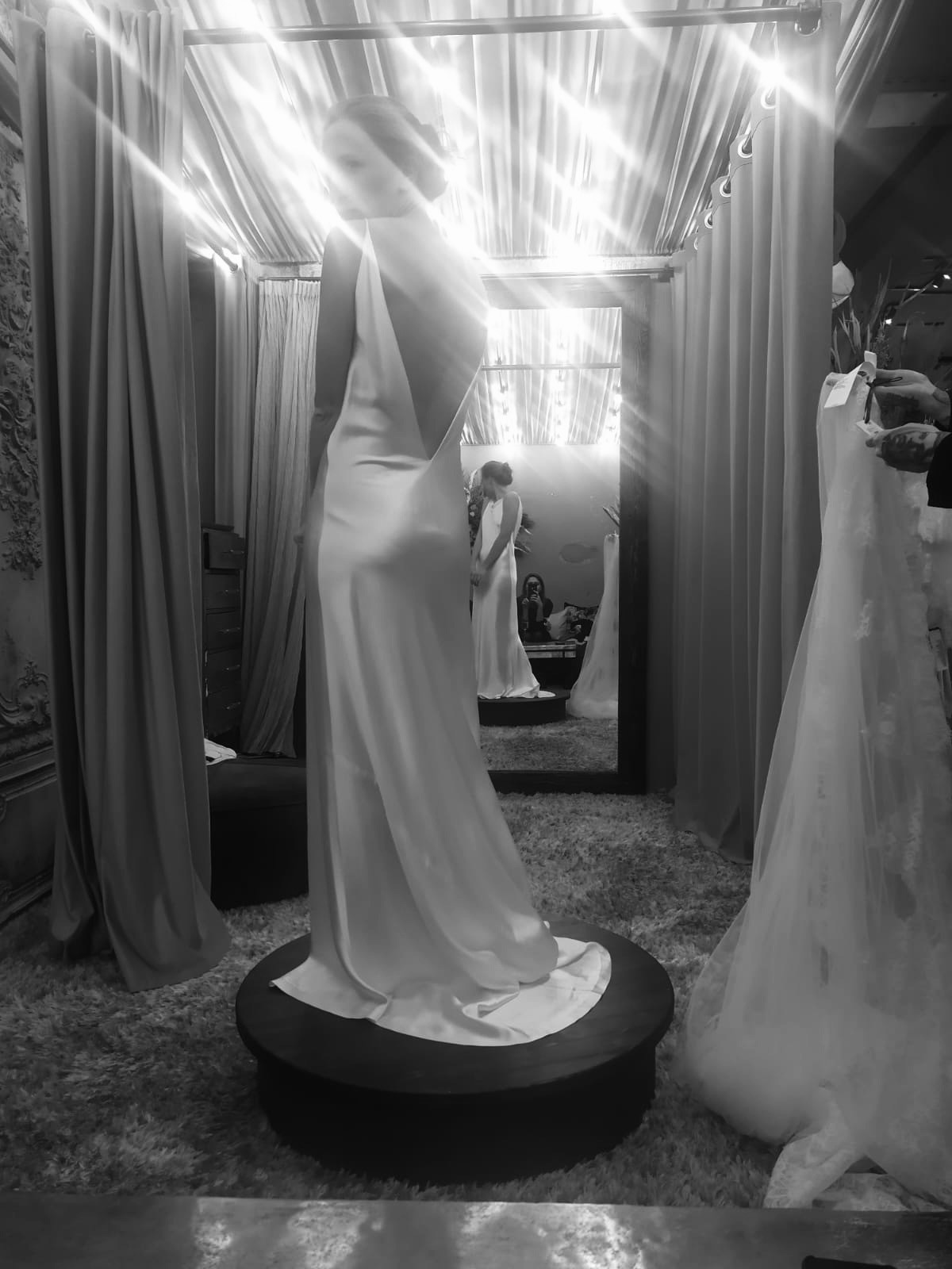 This gown has a timeless, minimalist elegance with a soft, fluid silhouette that gently hugs the body. Perfect for a bride looking for refined simplicity, high-quality fabric, and effortless style.