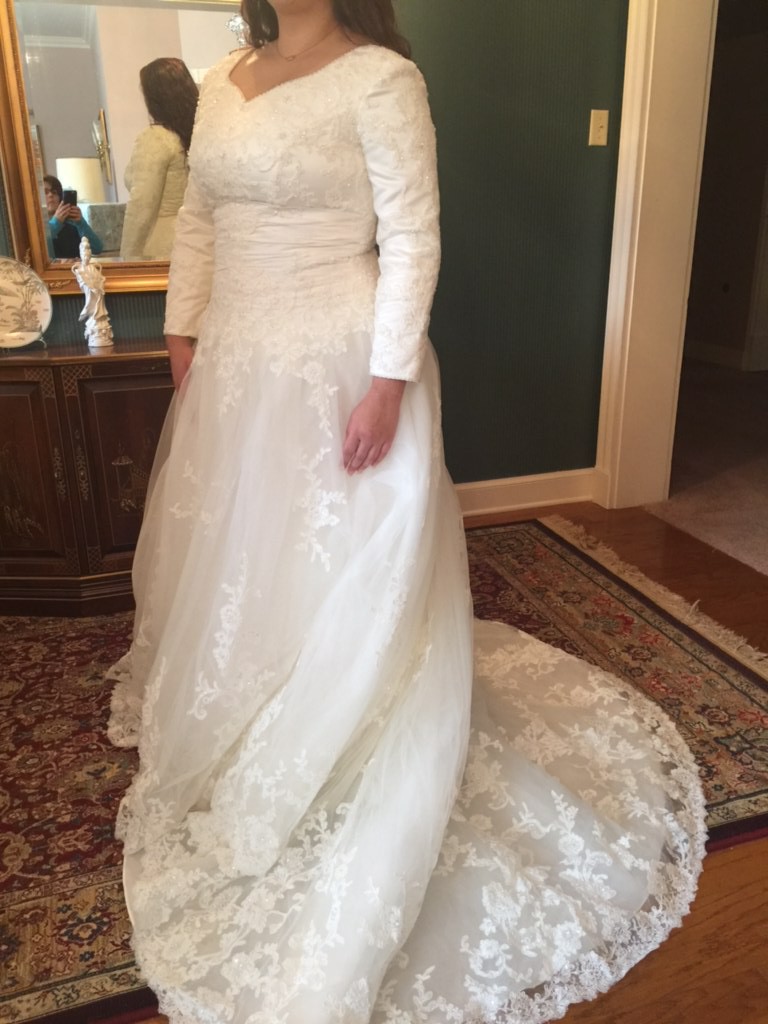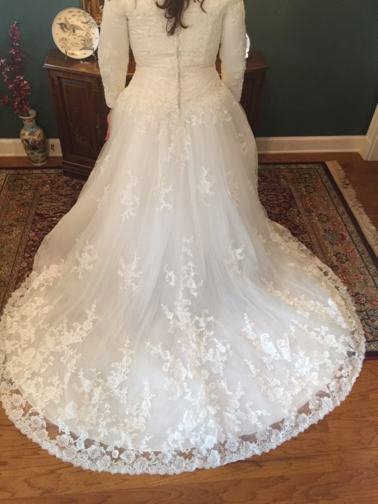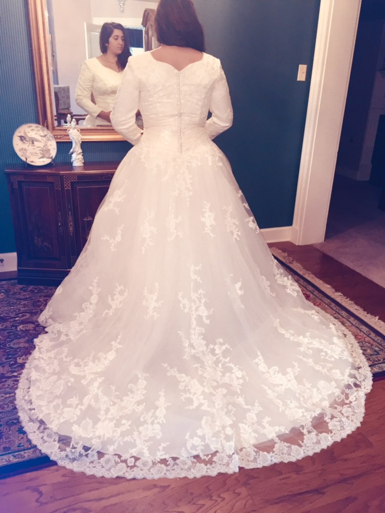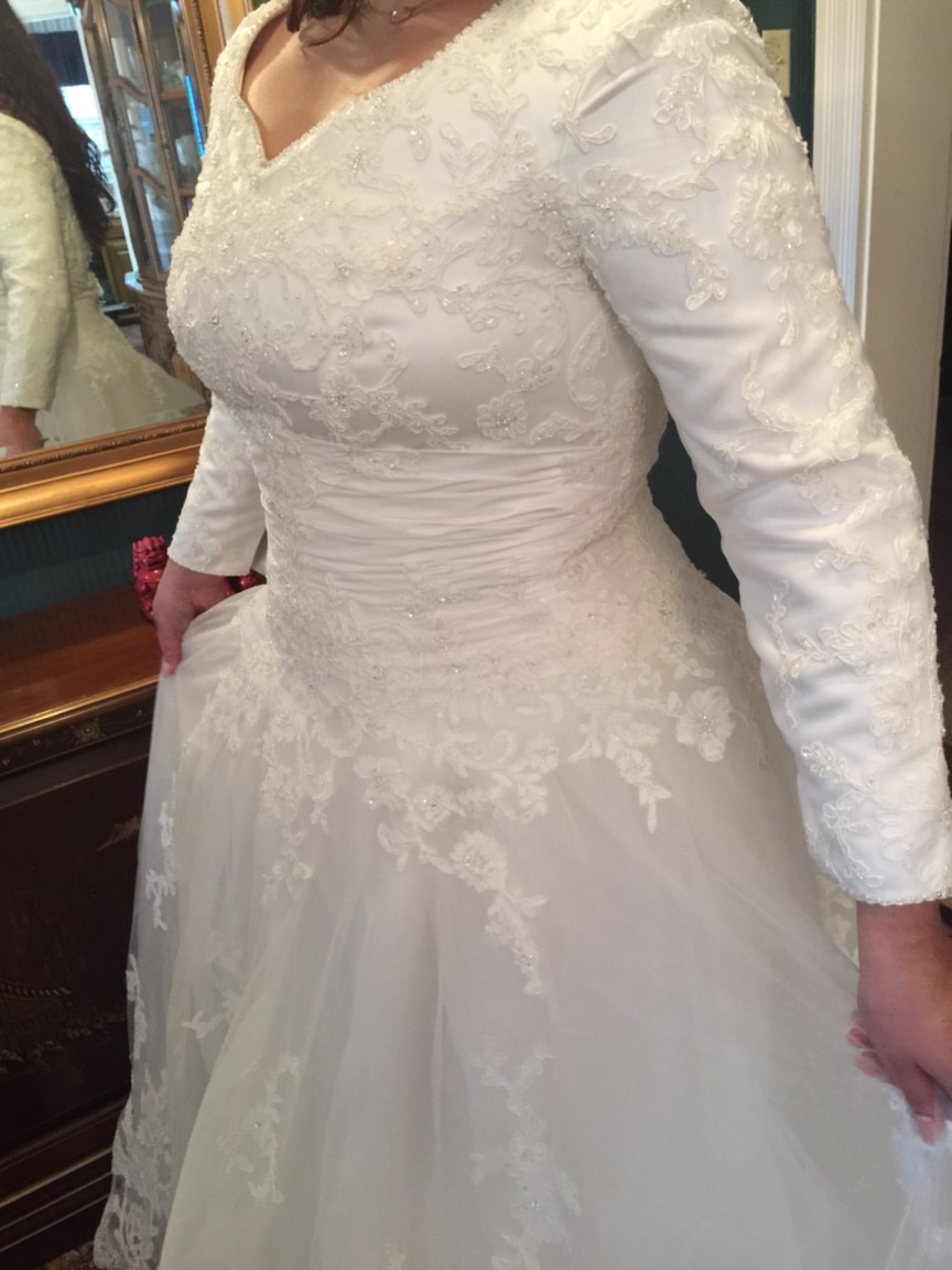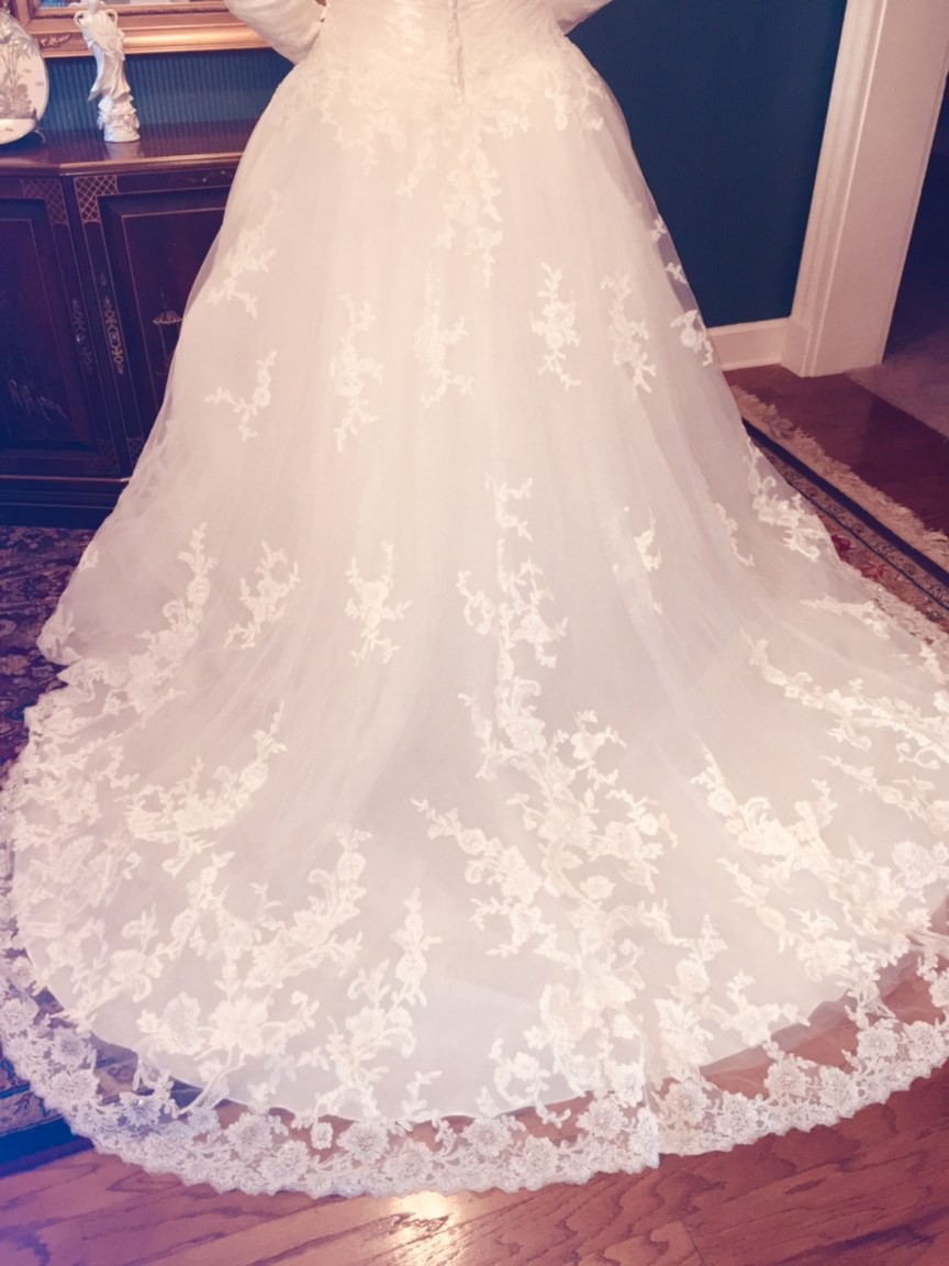 With its intricate detailing and elegant design, this size 18 wedding dress offers a balance of tradition and modern flair, making it a breathtaking choice for any bride looking to celebrate her love story in style. Allow this masterpiece to help you create unforgettable memories on your wedding day.