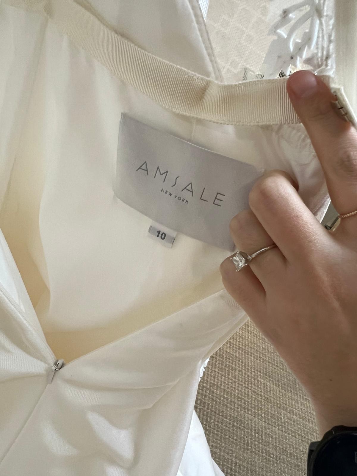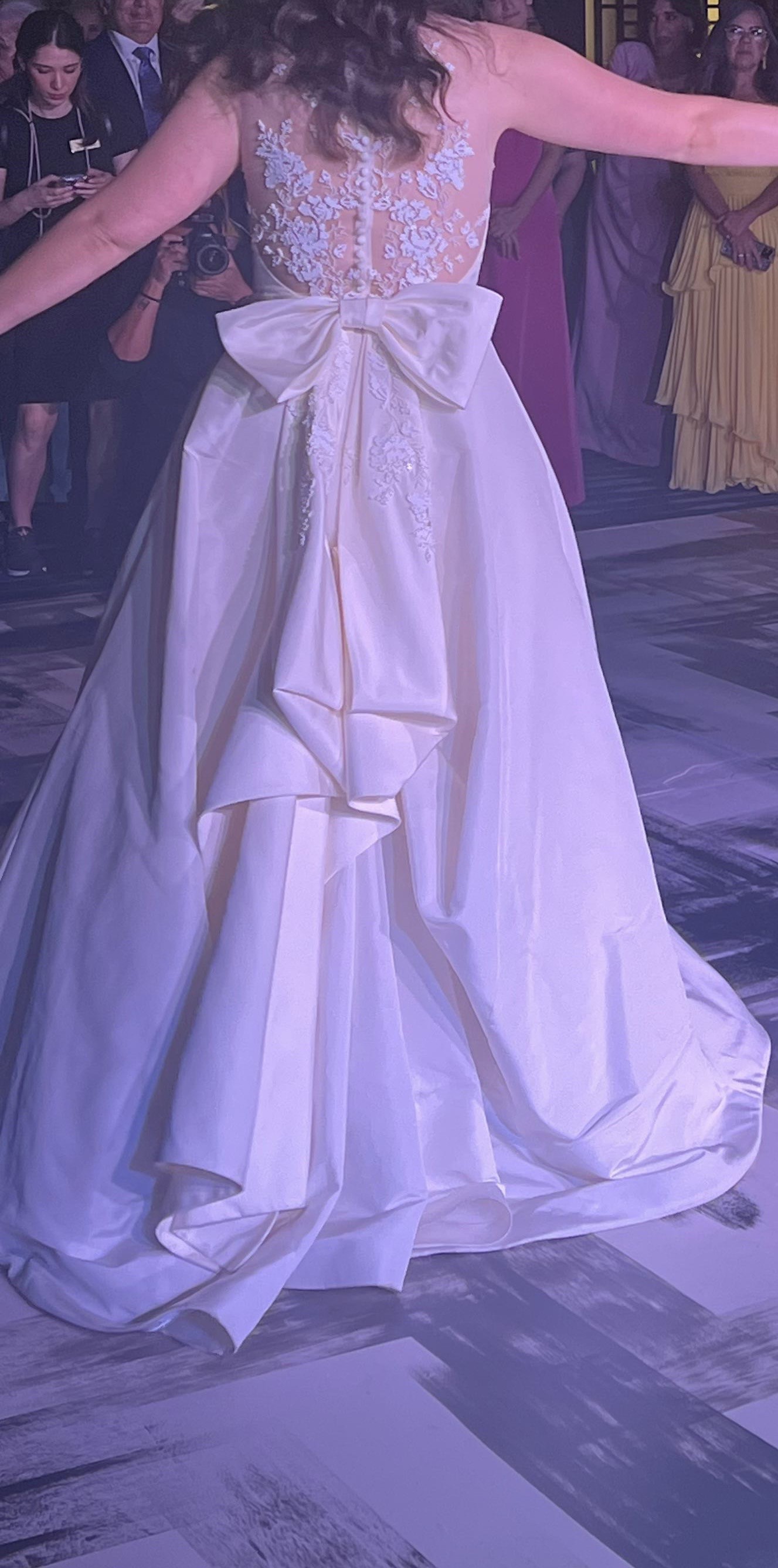This Amsale wedding dress has been a dream come true for me! Besides absolutely loving the look and feel of the dress ,the moment I slipped it on, I KNEW it was the one. The classic, elegant and well thought details along with the A line beautifully accentuates the figure while also having an astonishing look!