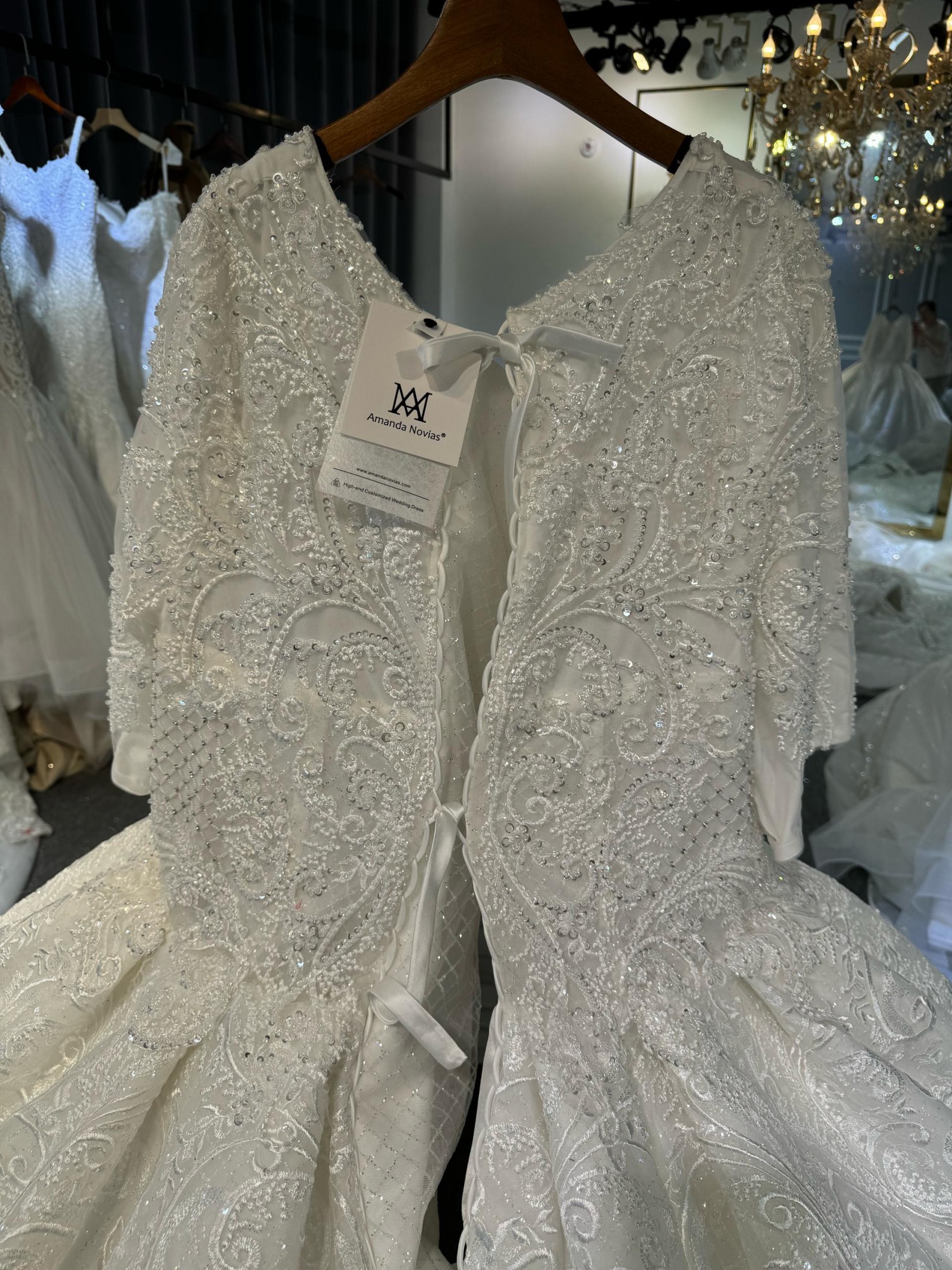 This Custom Made wedding dress by Amanda Novias is the epitome of elegance and romance. As I walked down the aisle, I felt like a true princess in this exquisite ballgown, crafted to perfection. The ivory fabric cascades beautifully to the floor, while the intricate beading and crystals catch the light, adding a magical touch to every moment.
