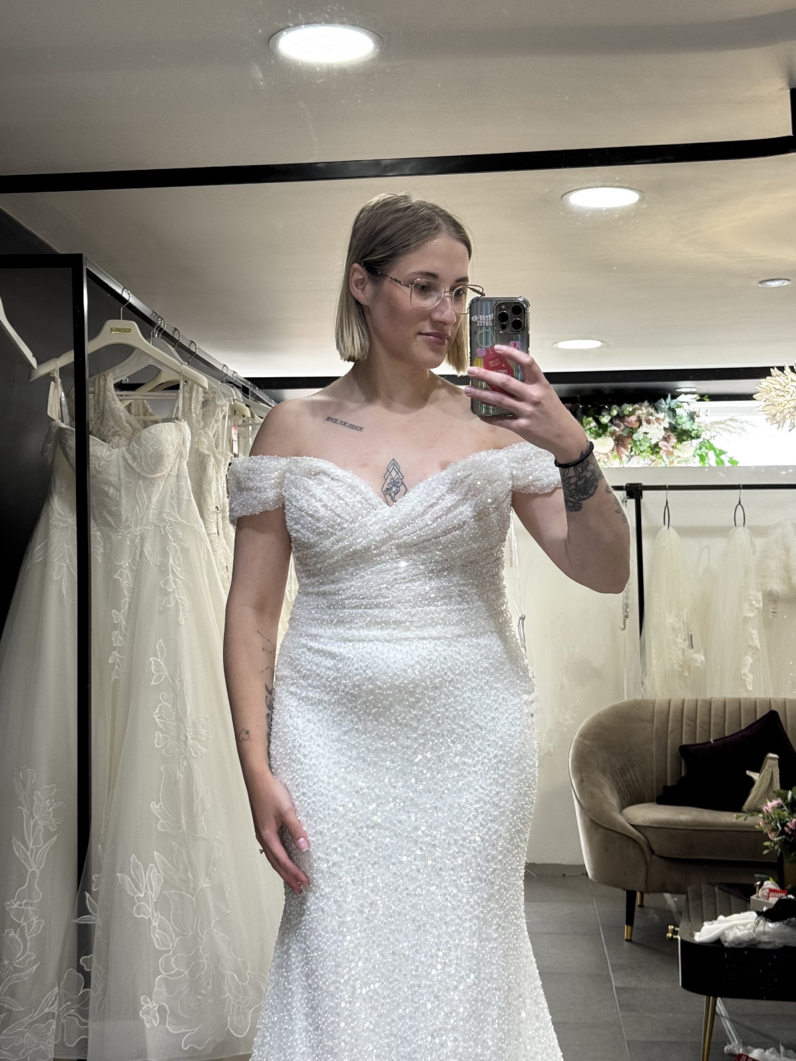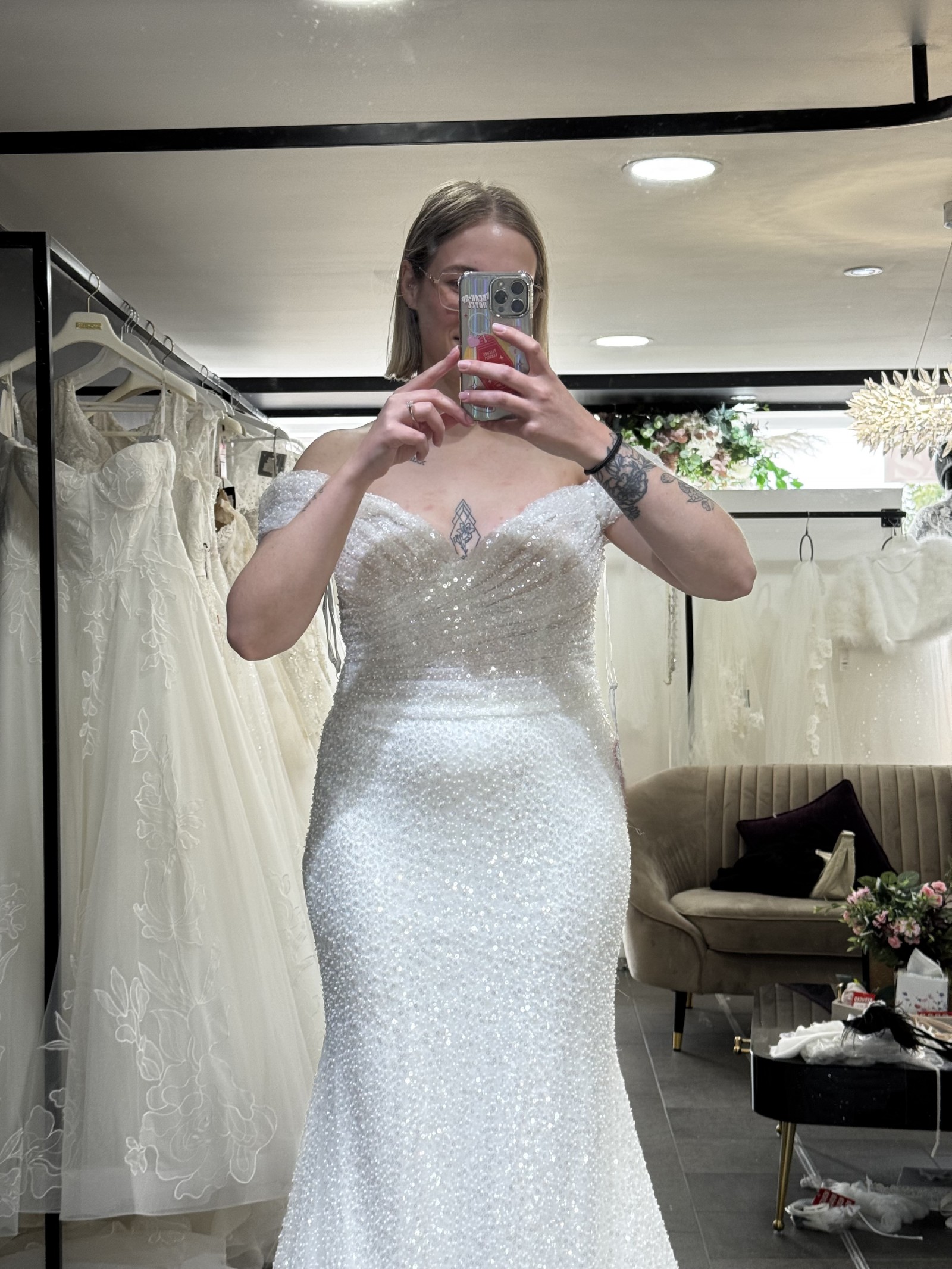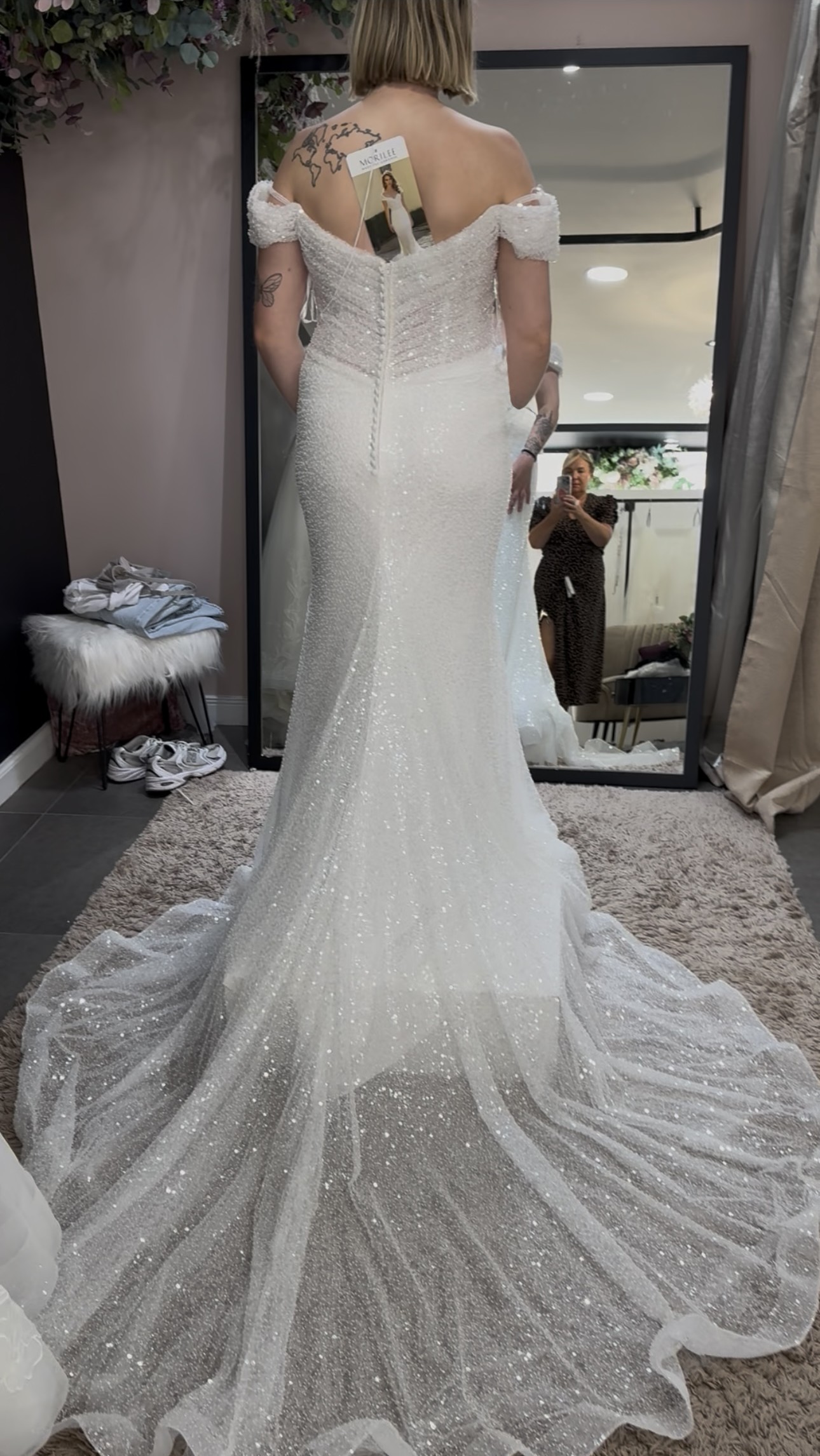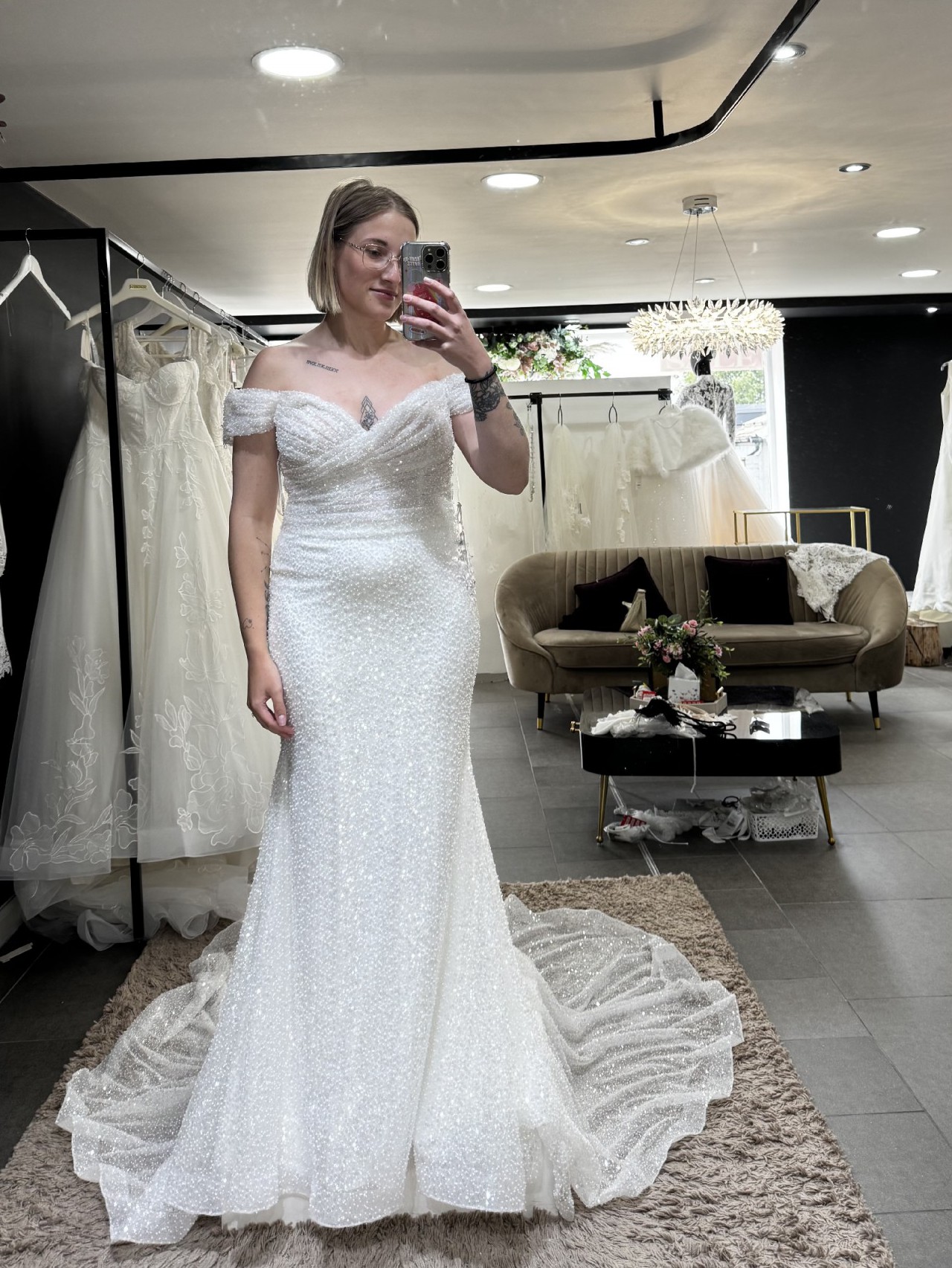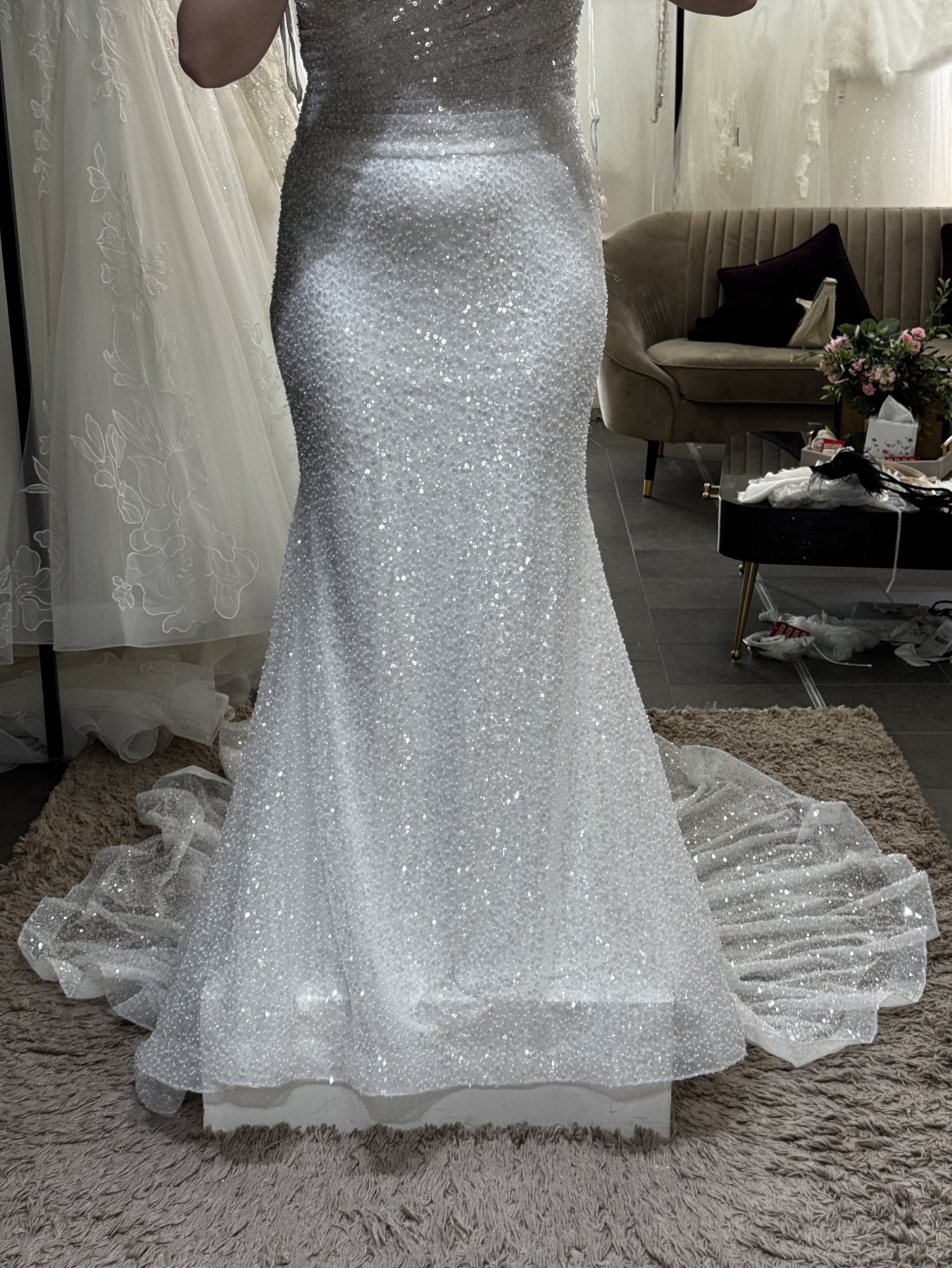 This beautiful dress is brand new, with tags still on, and in a wedding dress bag. It’s a beautiful dress however it no longer suits the venue I am to be married at, this is the reason for selling