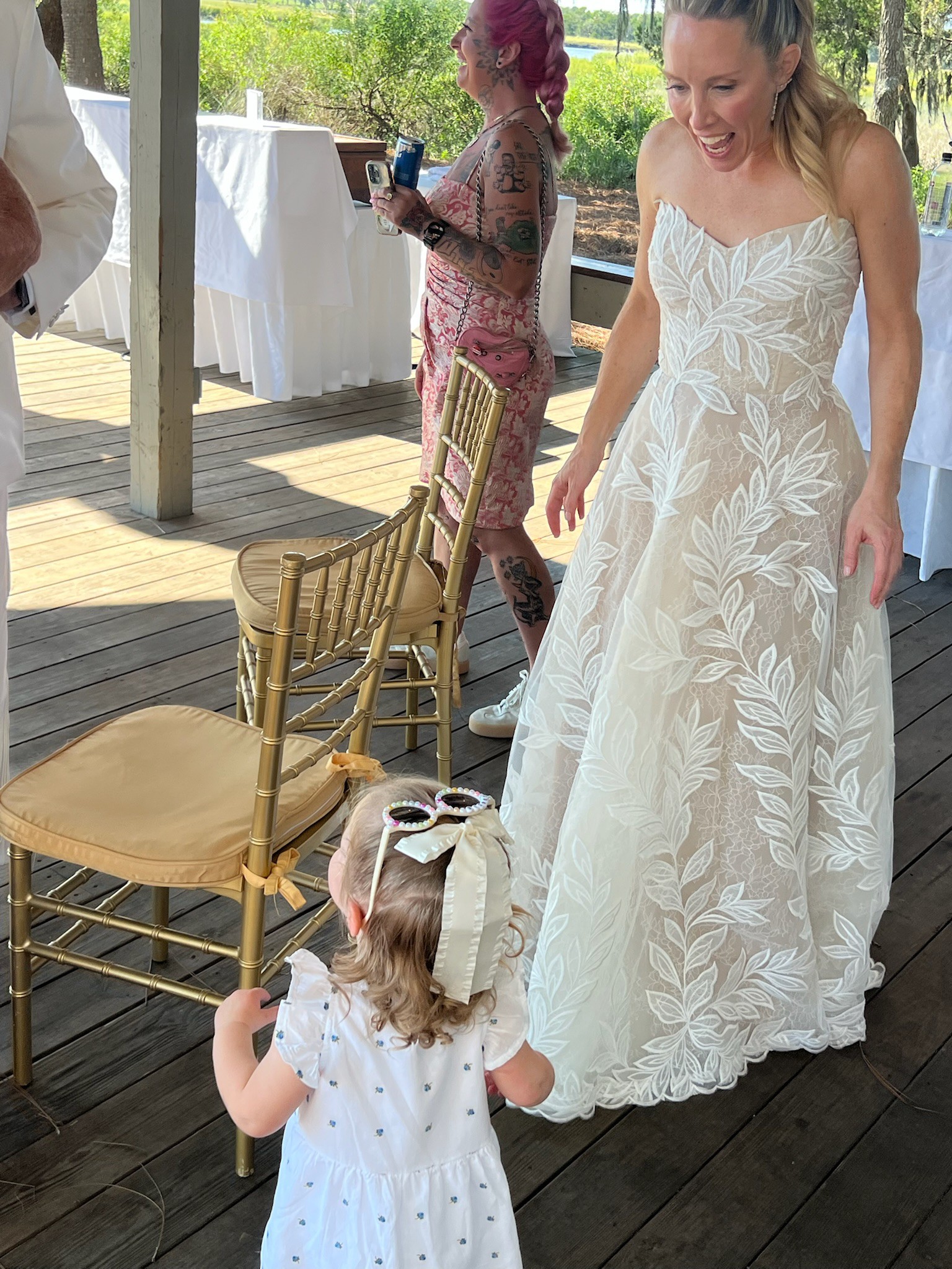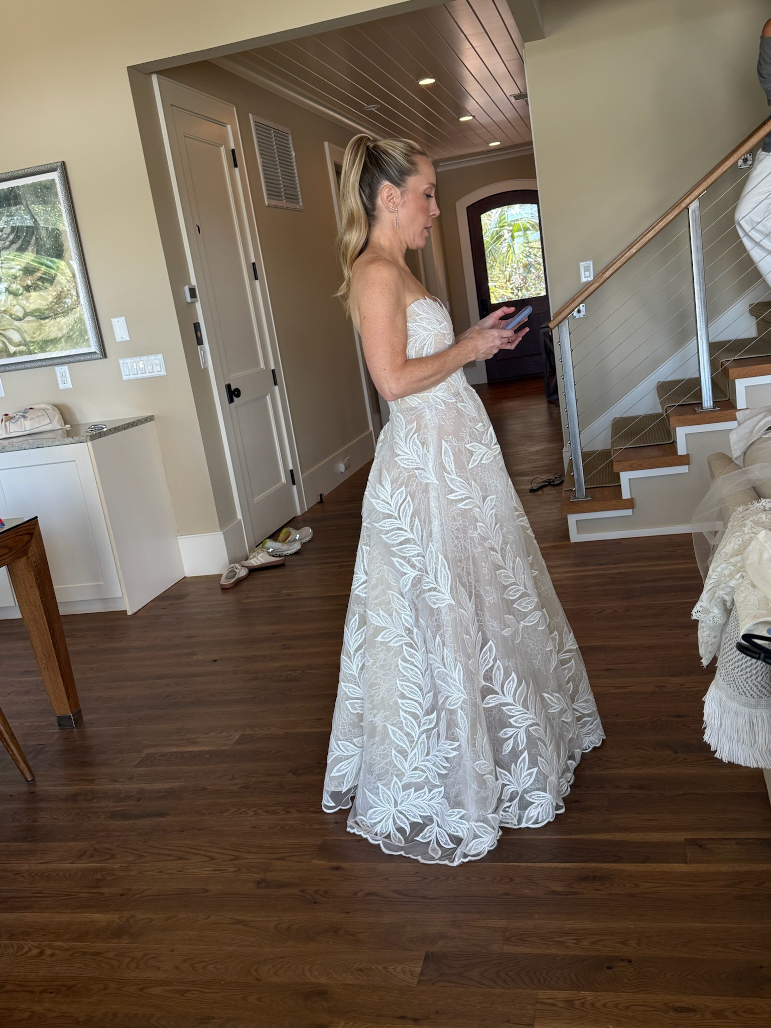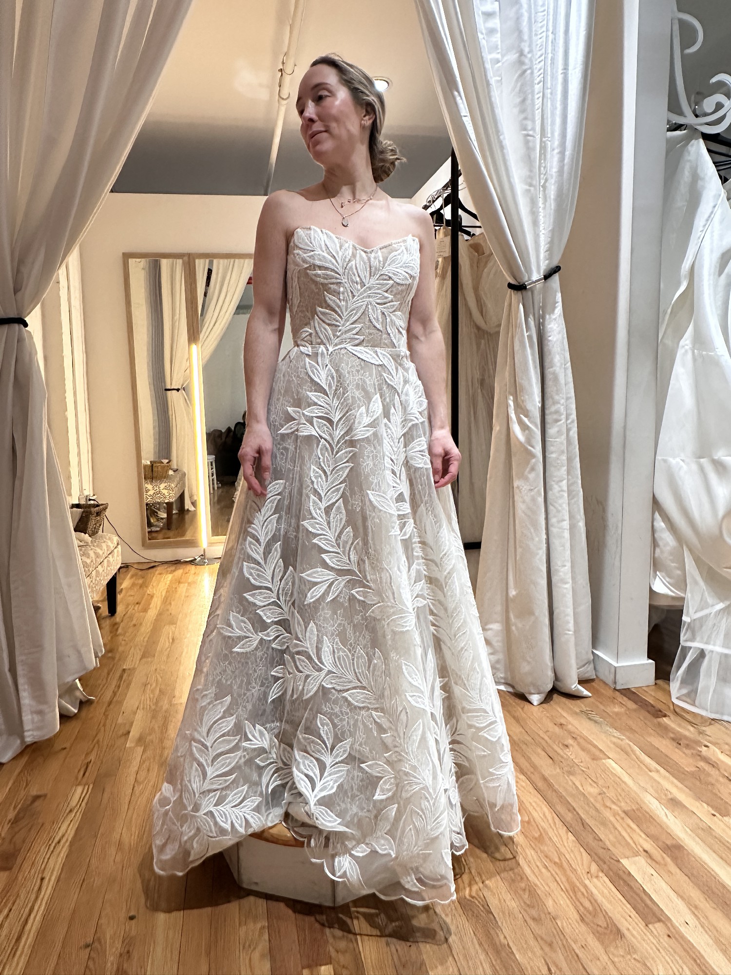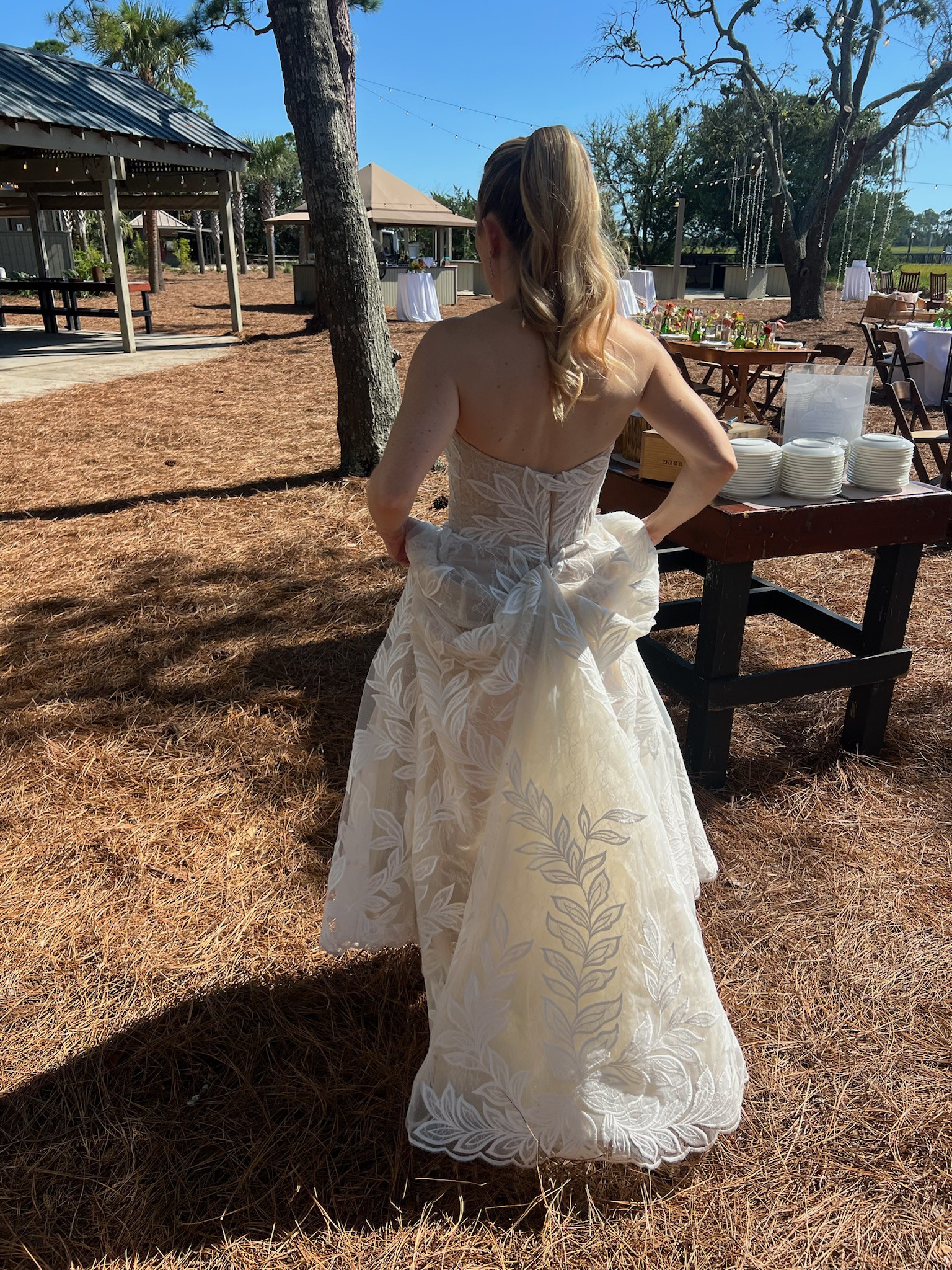 - The bottom of the dress was hemmed and the waist and chest were taken in to fit me! There is one hook and eye only for the bustle