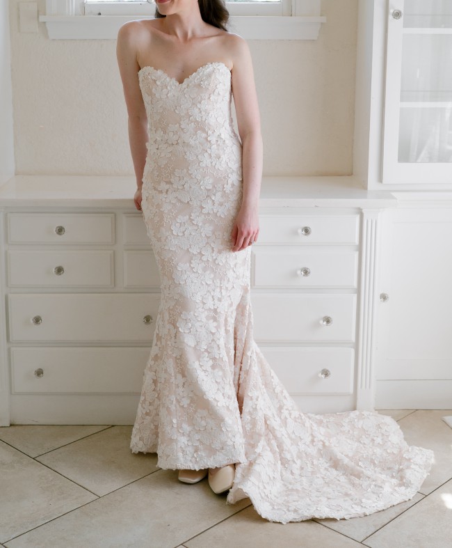 I altered the dress to be a little tighter on top so it wouldn't slide down during the day and it was perfect. It has a corset-like strap and boning, so I felt sucked in and supported, but I could sit and dance and breath. I typically wear anywhere from XS to Small, and had this modified a bit to be closer to streetsize 2. The dress was professionally dry cleaned last month.