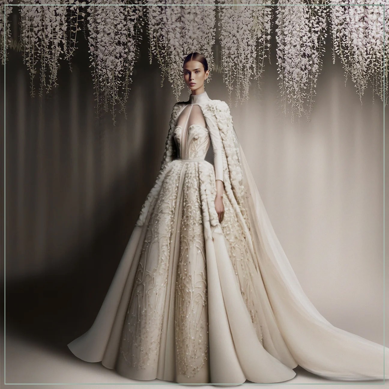 cascading with voluminous layers of tulle that create a majestic silhouette.