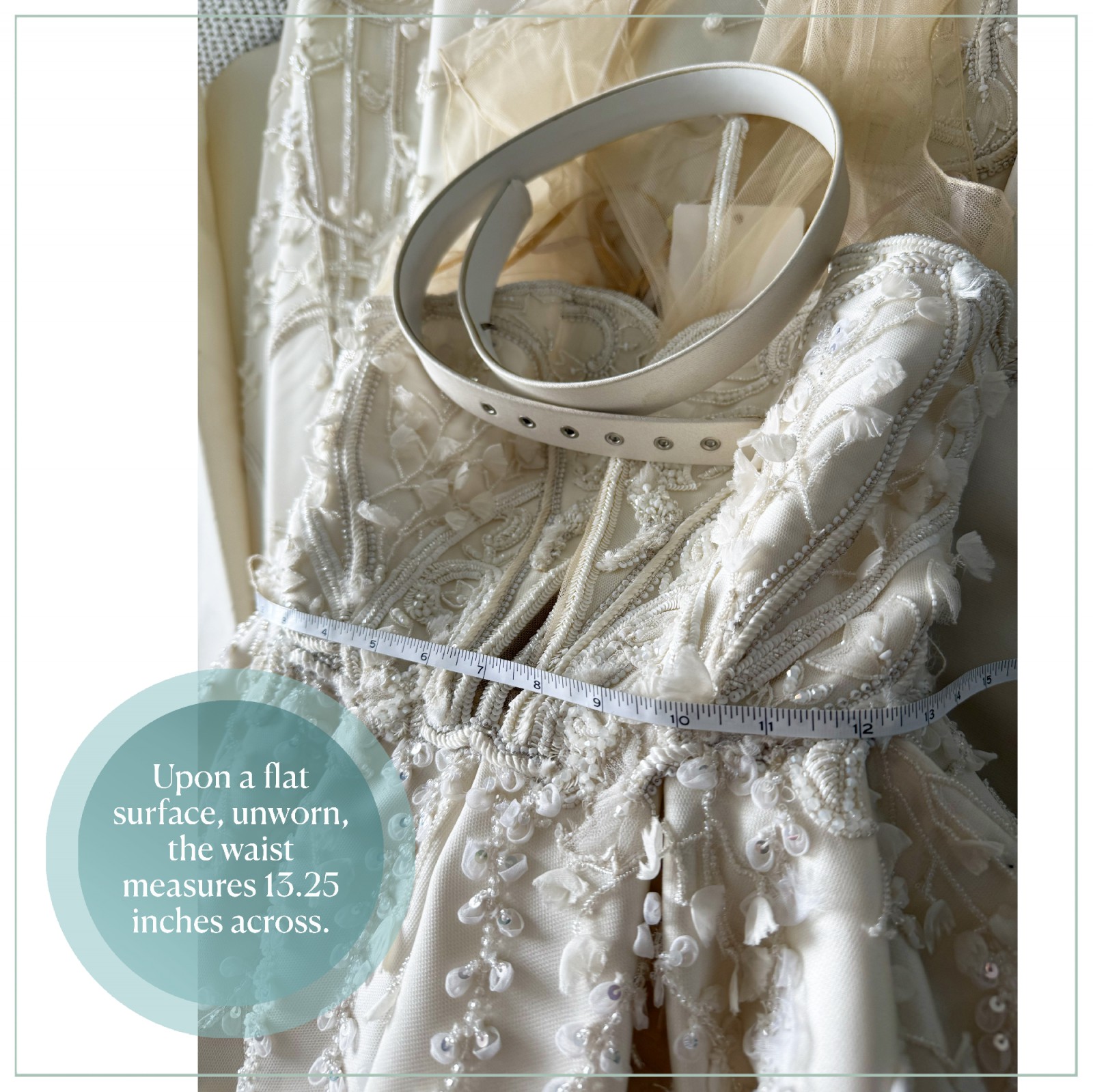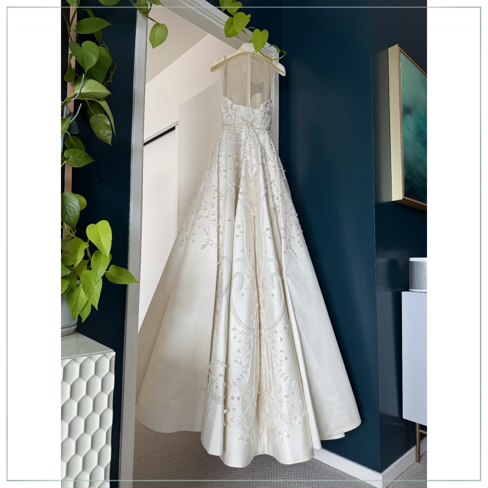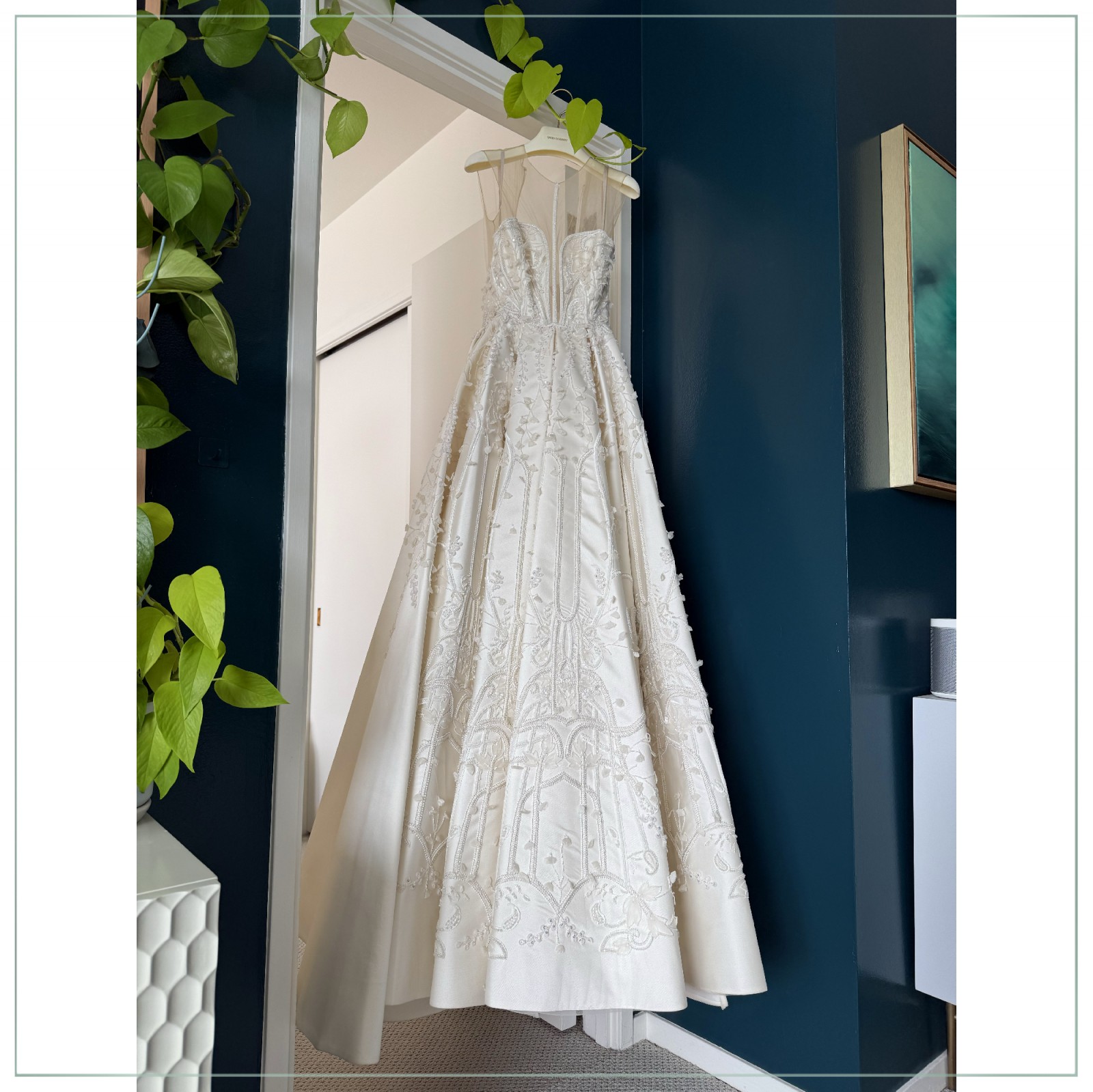 Exquisitely embellished and luxuriously heavy, this gown has breathtaking detail and phenomenal inner structure.