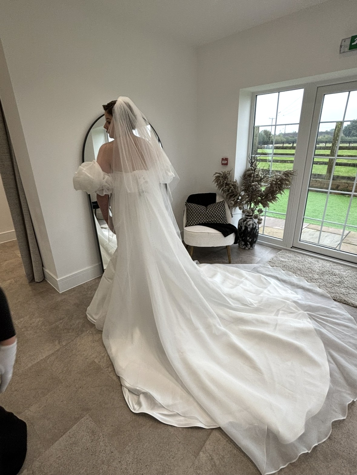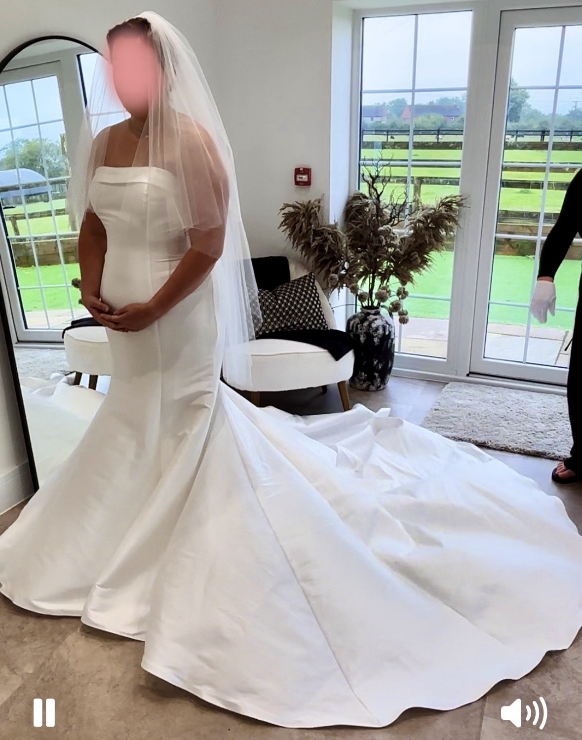 The dress and veil are brand new, have never been tried on or worn and still at the wedding dress shop delivered straight from the designer.