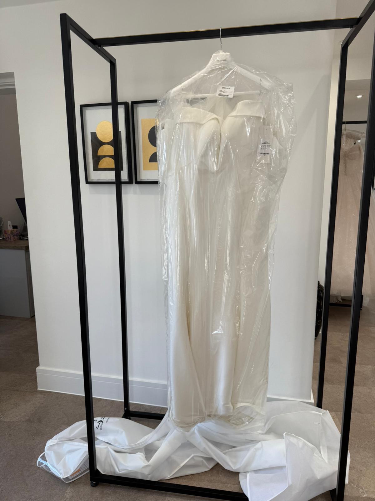 Still in original packaging and stored in dark, climate controlled room at ‘Silk’ wedding dress shop, Lichfield..