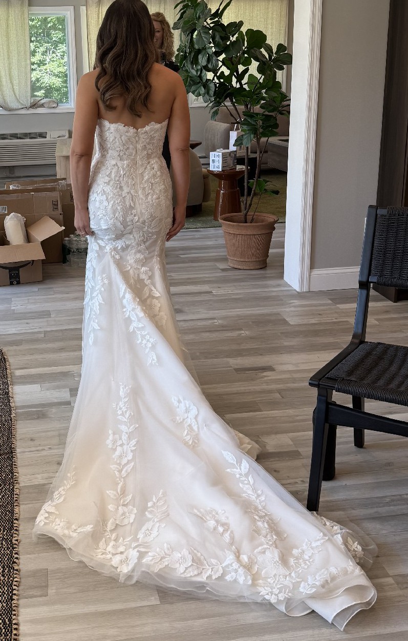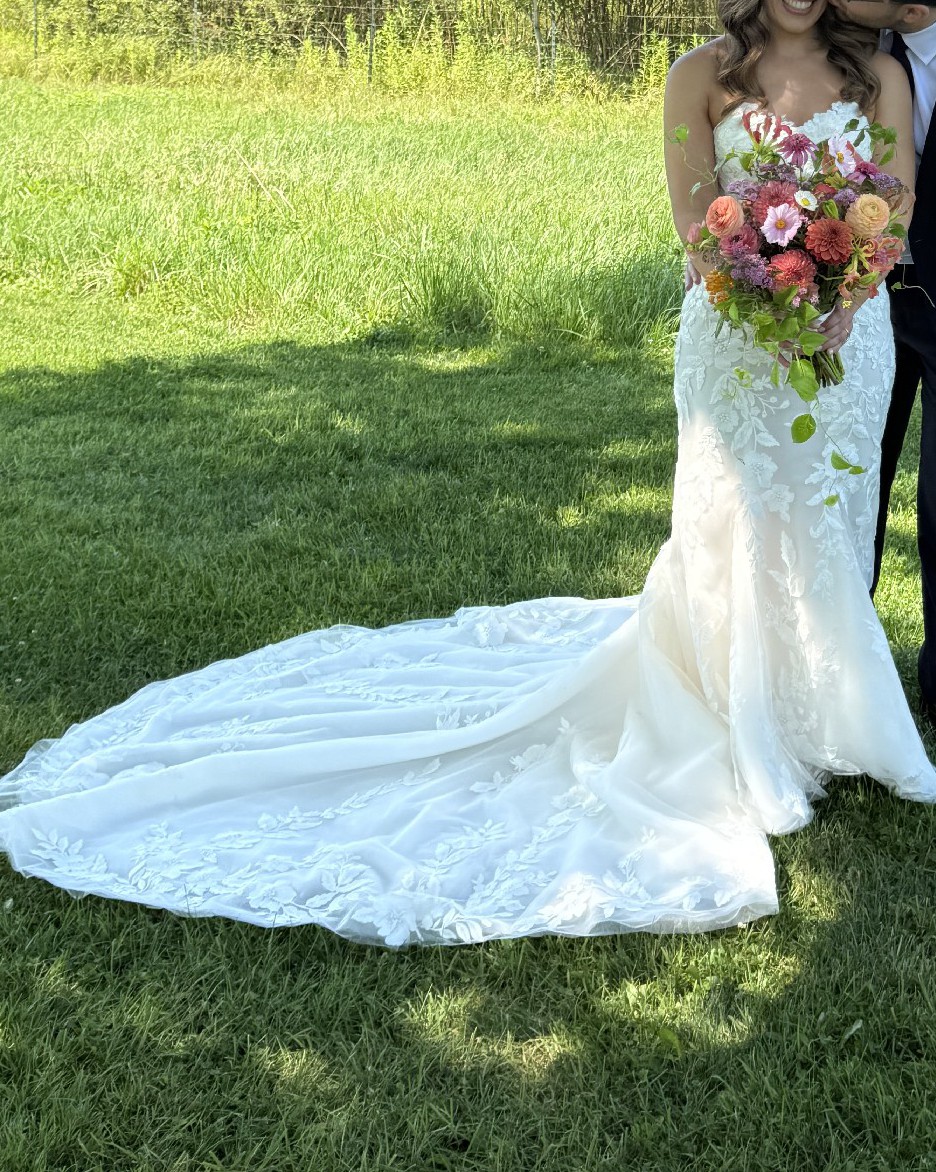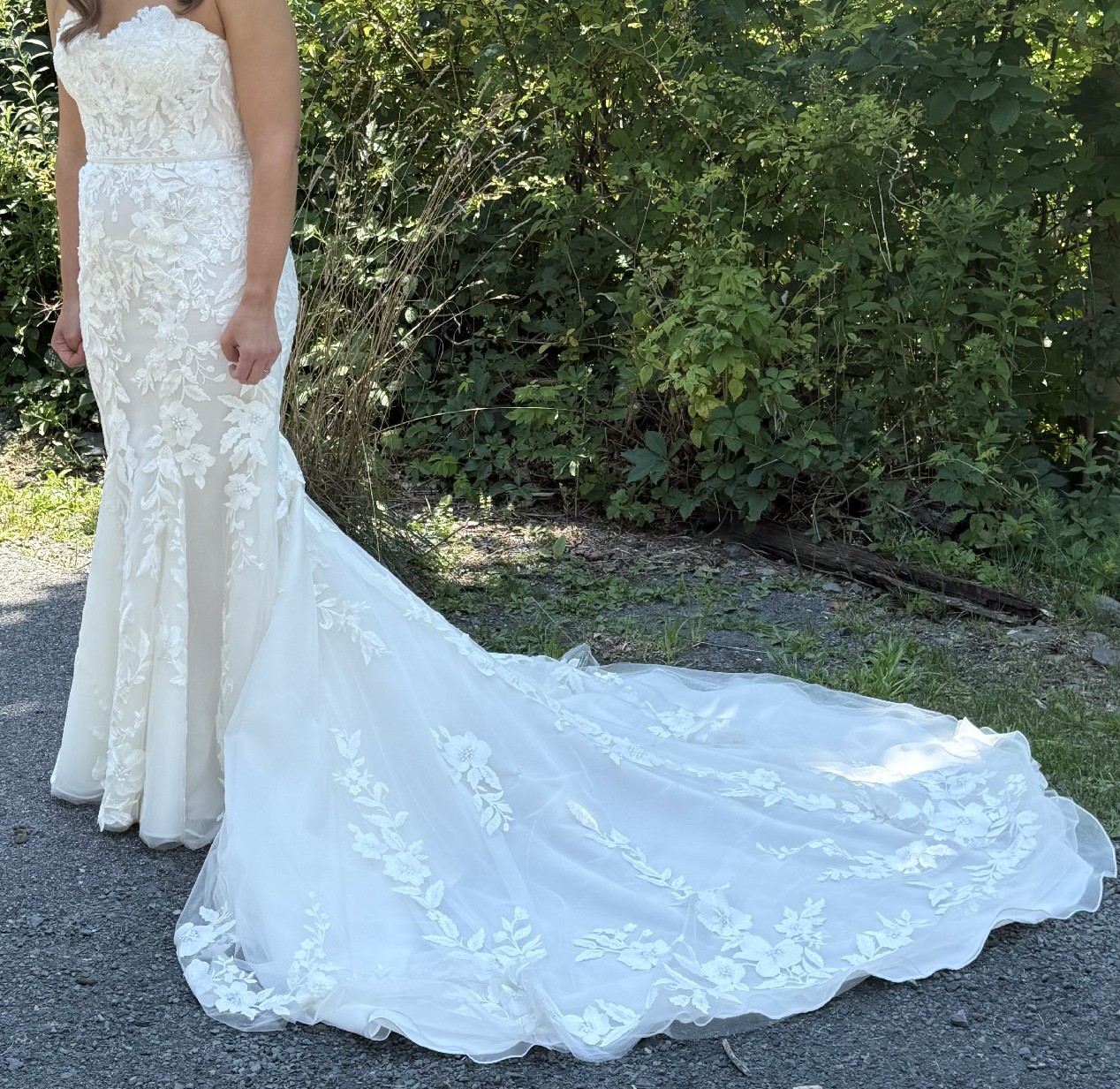 This stunning trumpet wedding dress from Wedding Atelier was the centerpiece of my special day, and now I’m excited for another bride to create her own unforgettable moments in it. With its breathtaking sweetheart neckline and elegant low back, it gracefully hugs the figure, making the wearer feel both beautiful and confident.